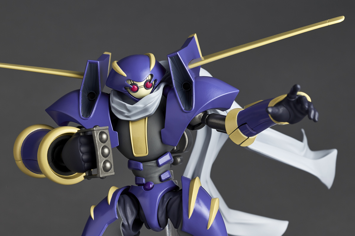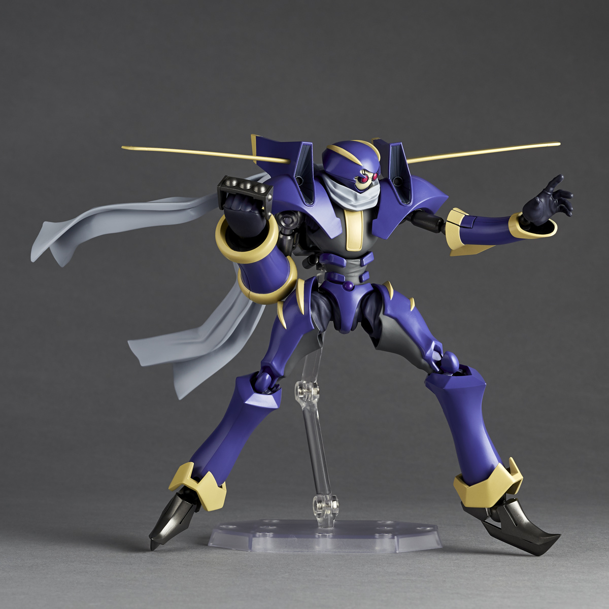 本次的廢品戰士可動人偶還原廢品戰士在劇中的造型,肩膀兩側帶有翅膀的流線型鎧甲搭配飄逸的圍巾動態展現出他在決鬥中的速度感,全身以塑膠的亮面光澤包覆身上的套裝,背部的引擎等細節也做了細緻的刻畫,20 公分的大小擺設在先前推出的「不動遊星」旁能夠還原劇中的比例,再現劇中的戰鬥場面!