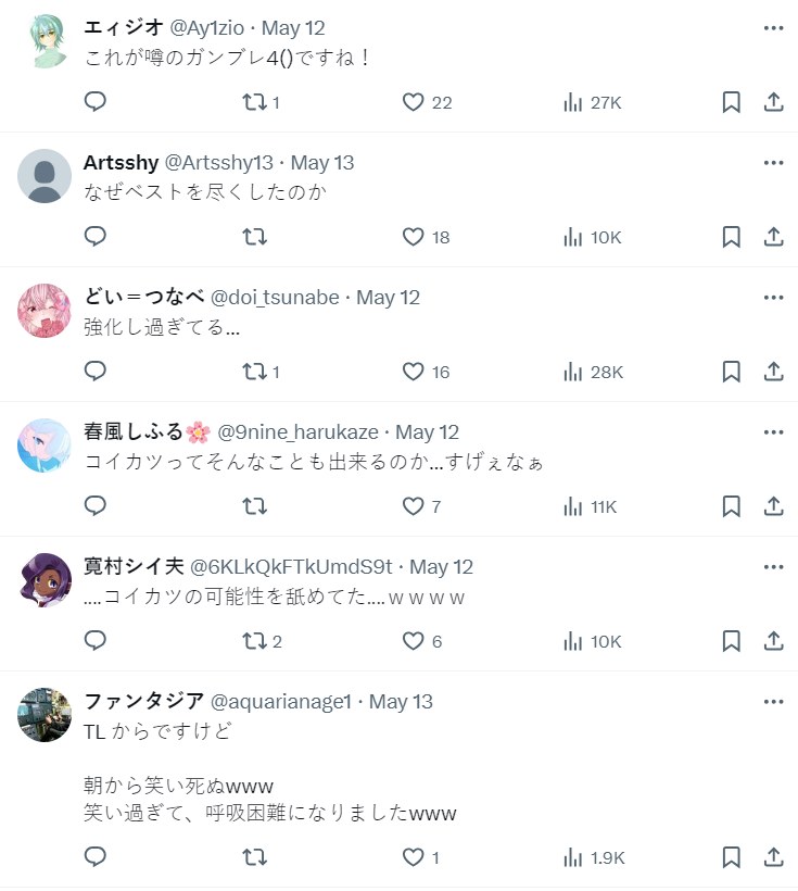 久々にコイカツを起動した私は、左の少女を立派なデストロイへと改造した。#コイカツ pic.twitter.com/M7KrPp0094— ToT@ブルコスに乗っ取られ中 (@TT4707649642239) May 12, 2024