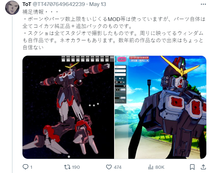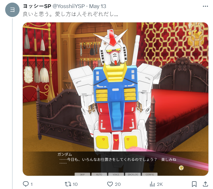 不過日本 X 上有位推主,透過戀活的強大機能,居然在遊戲中創造了出自《機動戰士鋼彈SEED DESTINY》的機體「破滅鋼彈」 ,超強的建模功力以及發想吸引不少網友關注,到底為何會在戀愛模擬遊戲中捏出 MS 呢 XD。