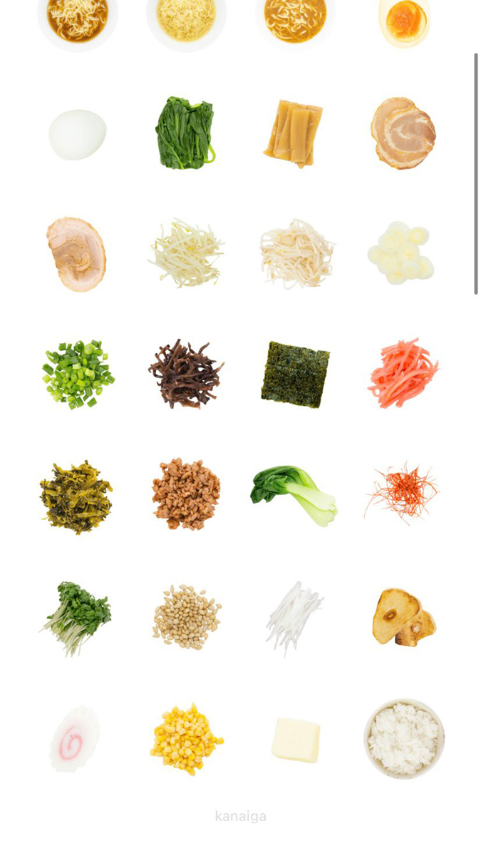 經常以食物為造型做出各種有趣幽默小物的カナイガ(@shiragaigarashi)這次做出了「拉麵貼圖」並已上架到LINE,這個拉麵貼圖是她利用以前做過的「拉麵印刷貼紙」將其圖檔作為貼圖用,而這貼圖是拼貼功能剛開放沒多久就上架,彷彿是為此功能而上架的。至於這個拉麵貼圖內容,顧名思義就是有各種拉麵常見配料,包含了拉麵本身,所以她就利用拼貼功能將拉麵和配料一個個拼在一起成為一碗真正完整的拉麵。