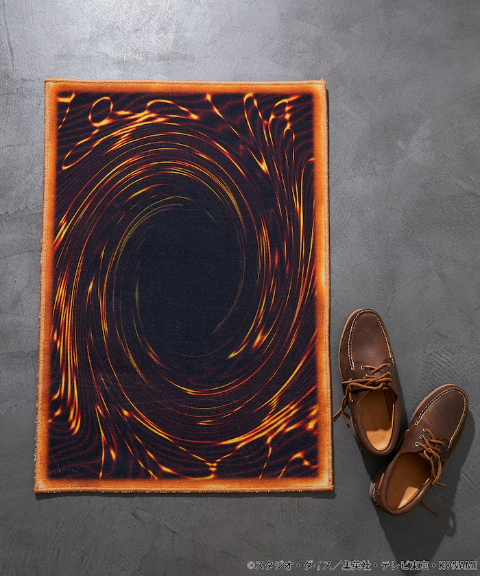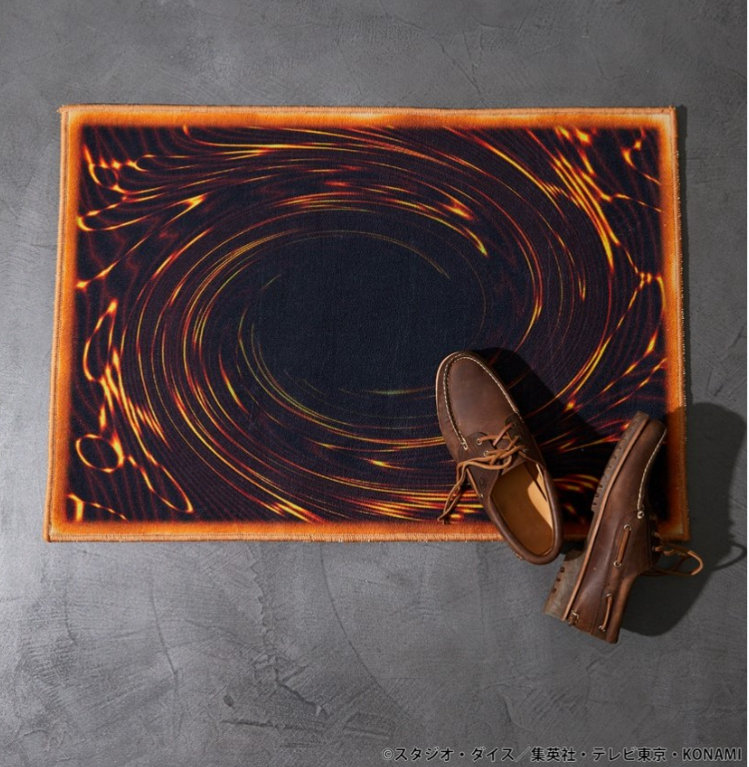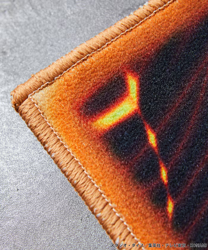 這次選擇 TCG 卡牌背面的經典圖案,這圖案從卡牌發行至今一直沿用至今,雖說少了原本的 KONAMI 與作品 LOGO,但整體有著約原卡片 10 倍的大小,規格為長86cm×寬59cm,適合擺放在玄關或是房間入口,就像打牌時要蓋卡 Set 一樣的道理 XD。