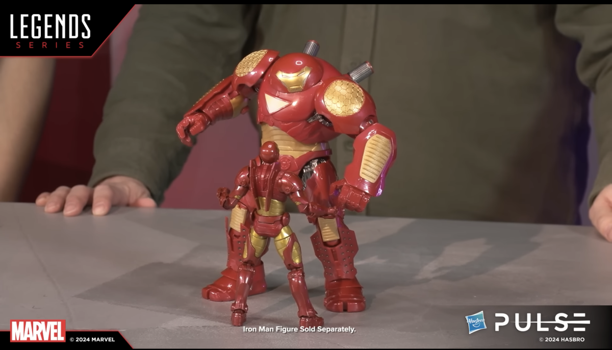 在介紹影片中主持人先是將漫畫版鋼鐵人 6 吋可動人偶擺放在桌上作為比例尺,從下方拿出浩克毀滅者時就讓大家對本次的設計以及尺寸感到驚艷。商品再現了浩克毀滅者紅金配色的裝甲造型,胸口及四肢的關節設計能夠靈活再現各種戰鬥姿勢,頭盔部分可以拆卸替換成東尼史塔克的頭雕,呈現出東尼在裝甲中的模樣。此處主持人也提到,孩之寶的行銷和產品開發團隊平常也有在關注玩具內容創作者們的把玩習慣,偶爾會將不同大小的人偶頭雕互換,有時比例看上去會有些不協調,但本次的浩克毀滅者設計即使替換上了史塔克的頭雕也非常地符合比例,視覺上相當和諧!