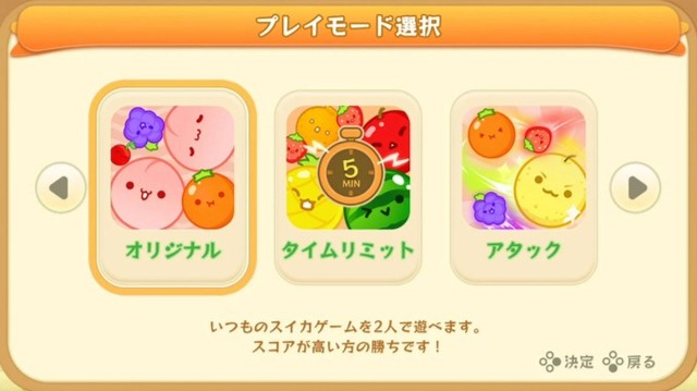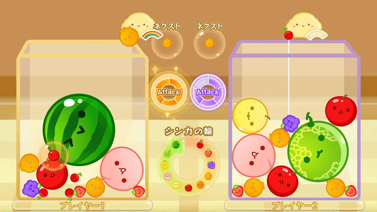 至於攻擊模式,則是「讓對方Game over就算贏」。這個模式中,每個被進化五次以上的水果,都可以發送到對方的BOX裡進行妨礙。如果能把大顆水果送過去,或許就是逆轉的關鍵?