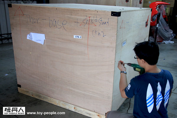 ↓ 這個超巨大的木箱上寫著“Batman Light”,很難令人不好奇其中的內容啊...