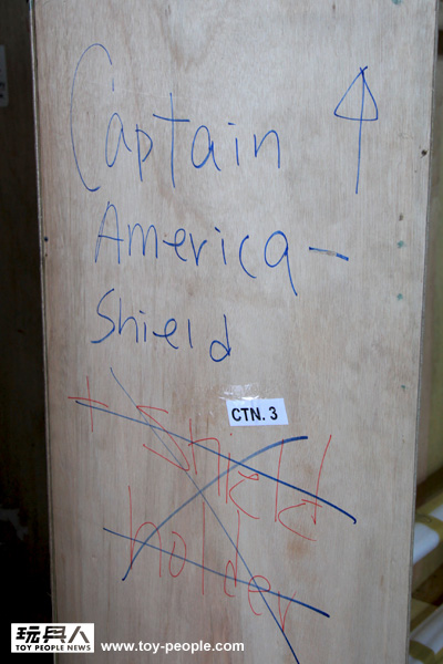 ↓ 箱子上寫著“Captain America Shield”,但是這個箱子居然大的像是一面牆!