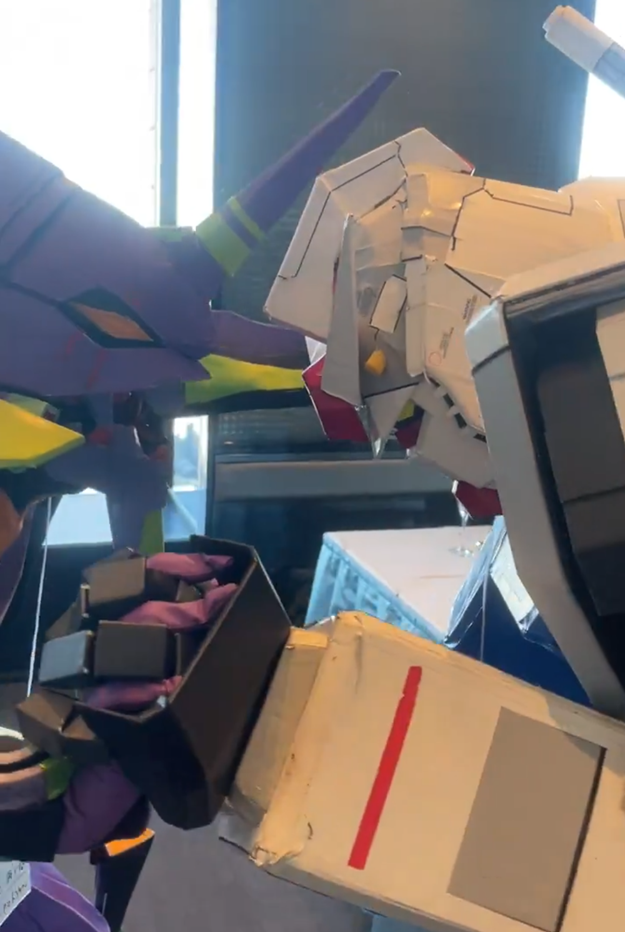 曾製作過《機動戰士鋼彈 SEED》的「自由鋼彈」服裝的 Coser なつは ( @bwd1004 ) ,近期發布了一個參加朋友婚禮二次會的影片,他身穿《新世紀福音戰士》初號機的服裝,跟身穿初代鋼彈的朋友在會場上決鬥,趣味效果吸引不少網友目光,更讚賞這樣的場面只有 Coser 才有樂趣。