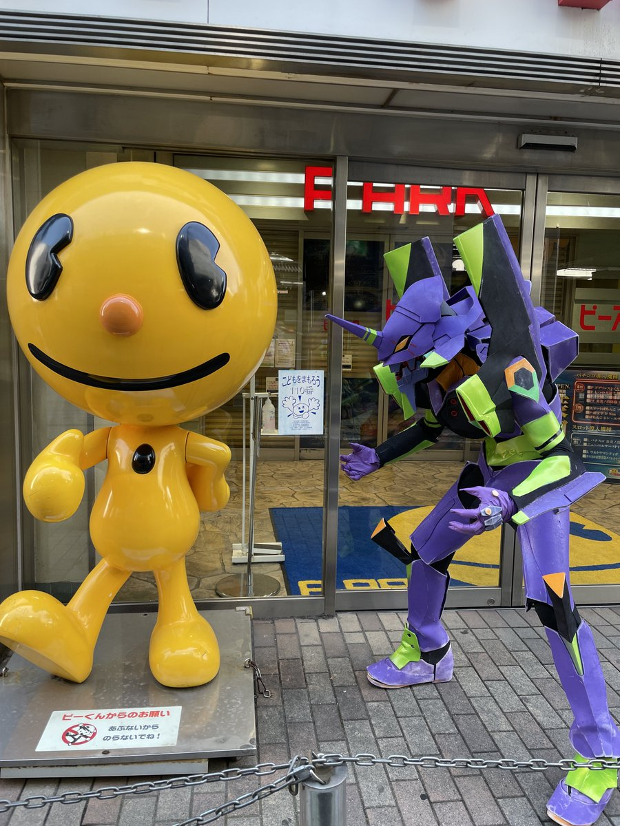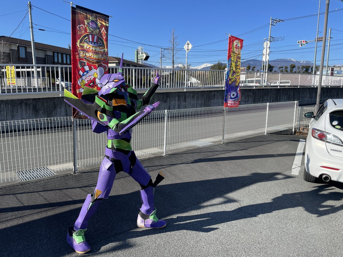 先前他在 comiket 102 扮初號機,因為當天暴雨,撐著 AT 力場雨傘的影片也在網路上爆紅 XD。