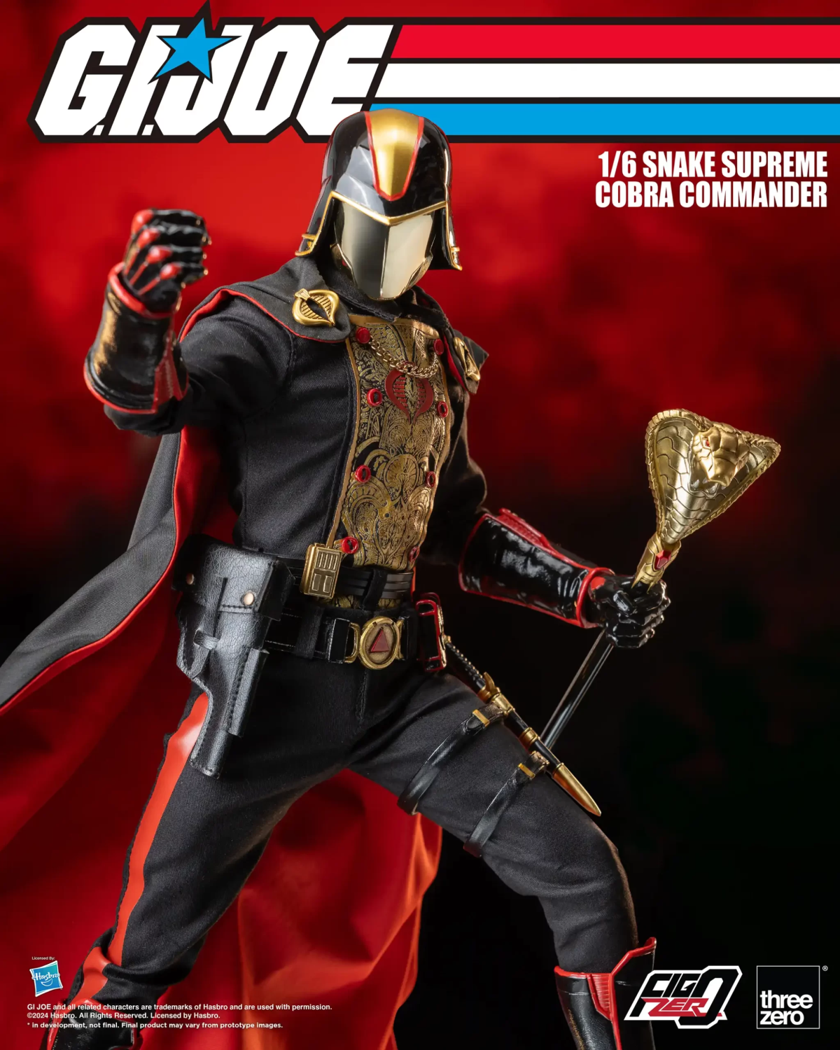 香港玩具廠牌 threezero 旗下以美、日動漫及特攝角色為主題的 1/6 比例可動人偶系列「FigZero」推出孩之寶旗下知名 IP《G.I.JOE 特種部隊》主題的新商品——「至尊眼鏡蛇指揮官」(Snake Supreme Cobra Commander)1/6 比例可動人偶,參考售價為 159.99 美元,目前已於美國知名玩具網站 BBTS(Big Bad Toy Store)限定發售,預計於 2024 年 06 月發貨!