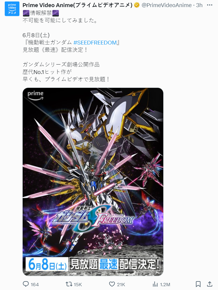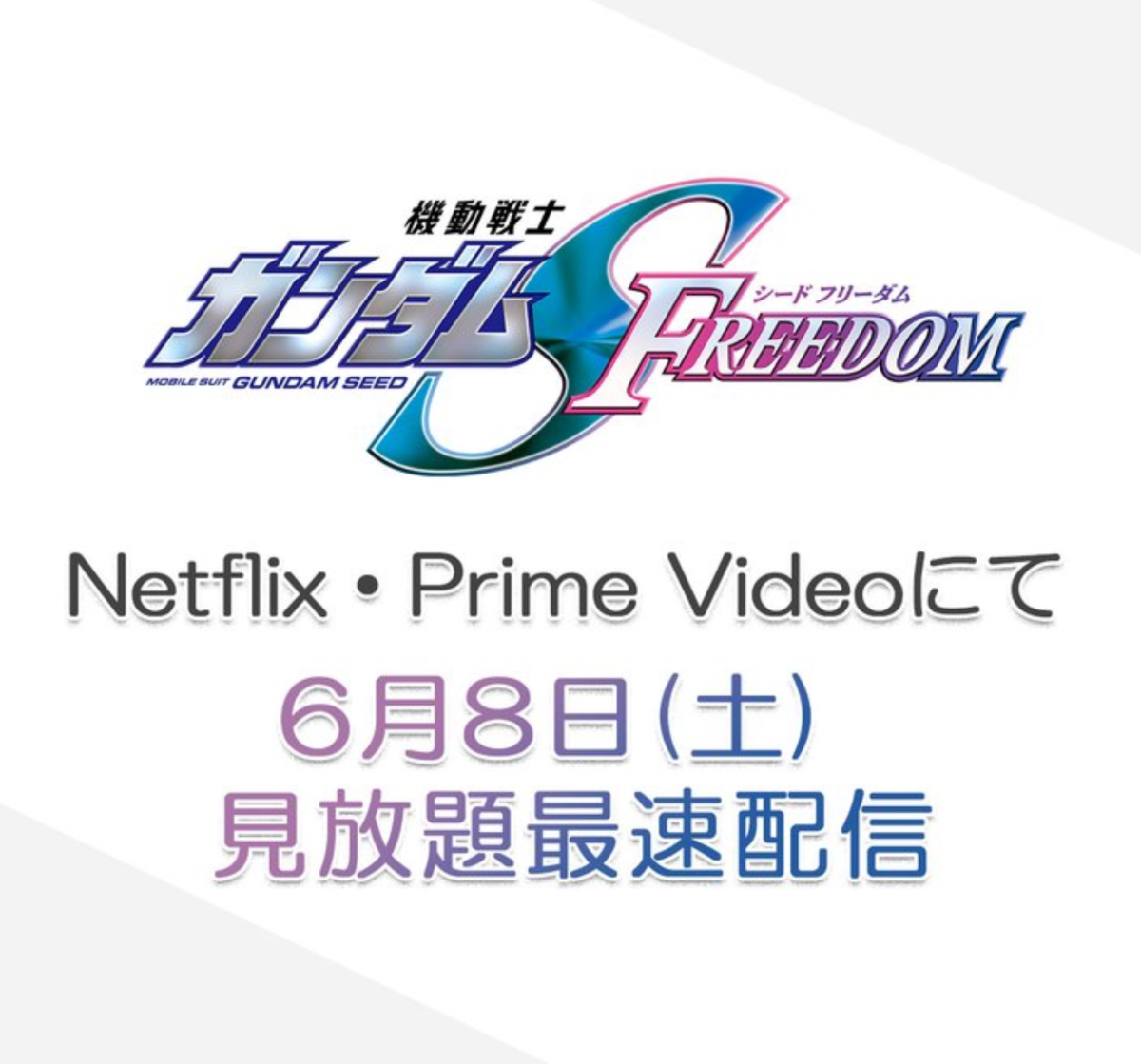 今日 ( 5/24 ) 官方宣布,將於 6 月 8 日起《機動戰士鋼彈 SEED FREEDOM》將上架串流平台 Netflix 與 Amazon Prime Video,不論是你是否到戲院看過,都可以在上面欣賞。