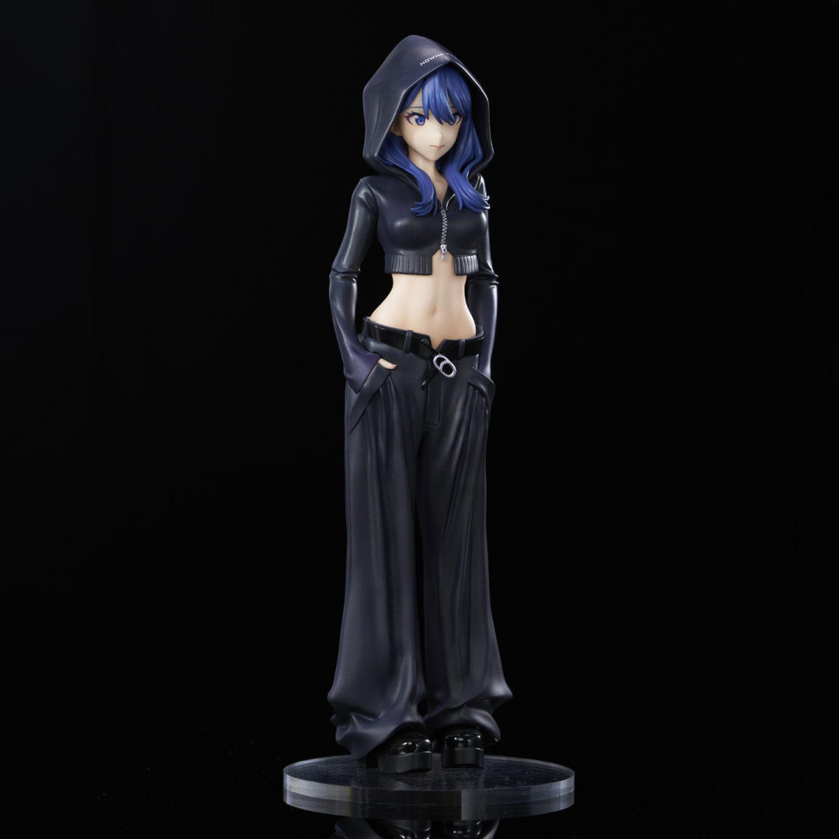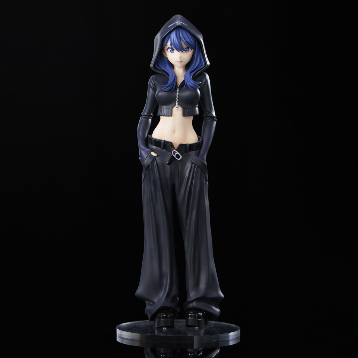 「GRIDMAN UNIVERSE ZOZO BLACK COLLECTION 寶多六花」無比利模型,尺寸約高 24.5 公分,將結合 ZOZOTOWN 品牌形象的黑色調原創服裝立體化,酷酷的街頭風格呈現出與劇中制服造型截然不同的時尚魅力~小短版的連帽外套,露出腰間的白皙肌膚與纖細的腰身線條,與黑色的服裝形成鮮明對比,非常耀眼!但寬鬆的長褲遮住了標誌性的大腿...實在是太令人遺憾啦...