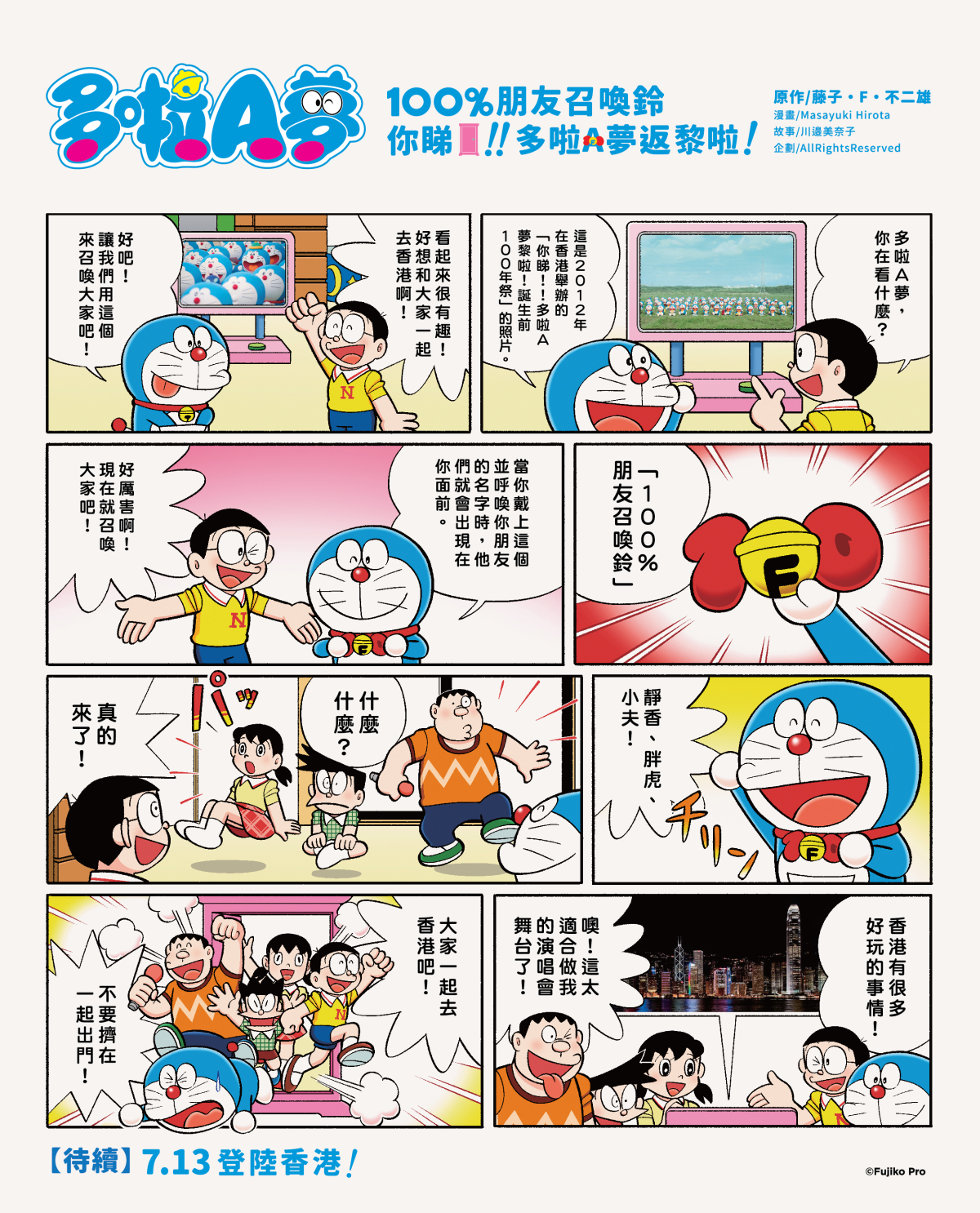 多啦A夢帶來新登場特別法寶「100%朋友召喚鈴」,召喚全球好友香港見!