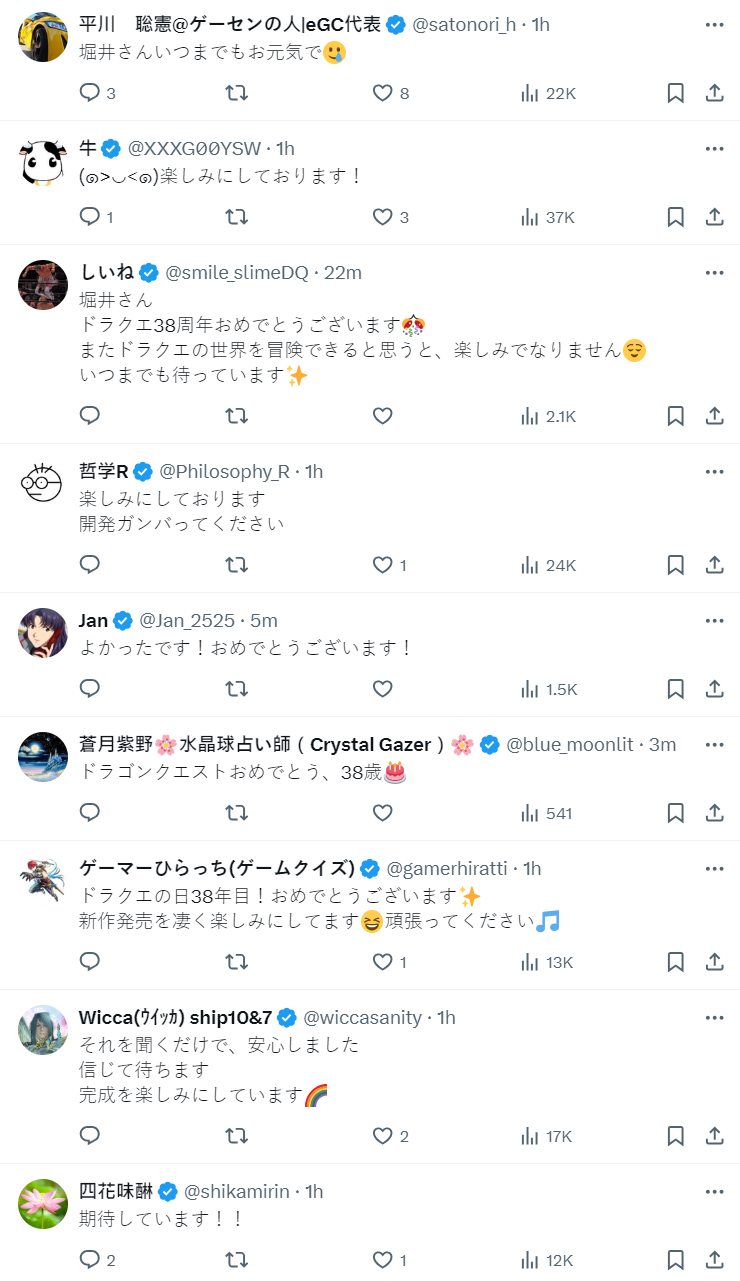粉絲也勉勵堀井雄二保持元氣健康,大家都很期待 DQ12 的發行,會等候好消息公布。