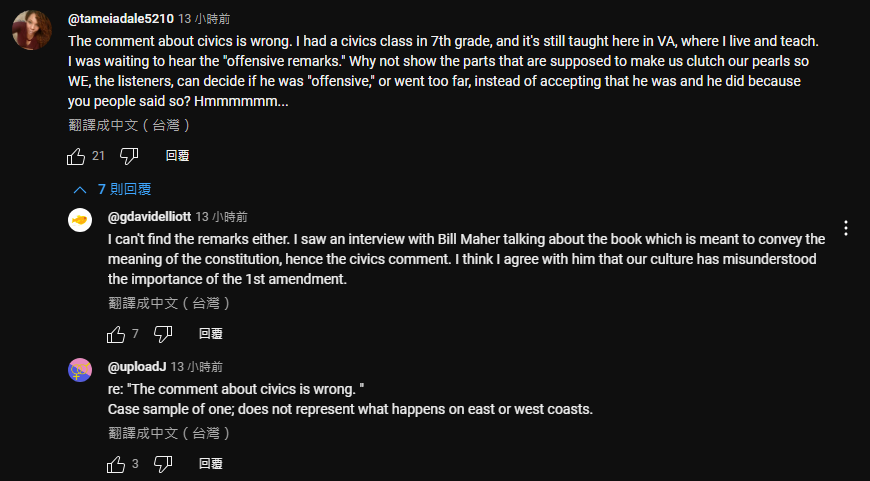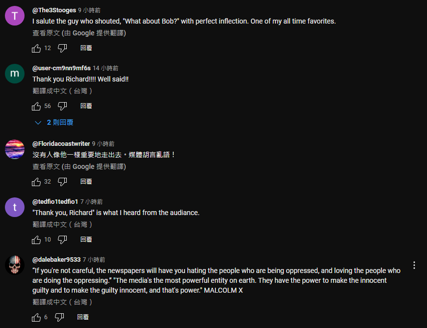 其中一名叫做Cheri Ziegra的網友,也在Facebook劇院粉專「The Cabot」上留言,譴責官方居然沒有過濾這種帶有歧視意味的行為,任由散布這種內含歧視、厭女言論:「真是太噁心了,The Cabot劇院居然沒有審查他的演出,雖然我是後來才知道,他(指李察)有這種種族主義、恐同跟厭女的發言。」