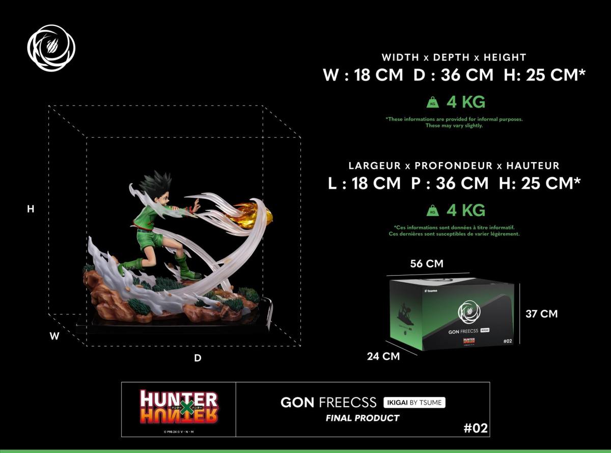 本作根據小傑的經典念能力必殺技「猜猜拳」為題製作,並以其中的放出系攻擊「布」為主打,打造出氣勢十足的戰鬥場面!小傑本體身穿極具代表性的綠色主調套裝,長靴、刺蝟頭,以及直視前方的堅定眼神......等小傑的角色特色皆高度還原,而在整體長達 36 公分的場景中,TSUME ART 製作團隊在場景環境描繪與特效件的表現上也十分用心,除了帶有透明感的橘色能量球之外,能量球周邊與場景中席捲起來的氣流特效也讓小傑的戰鬥動作更具臨場感。