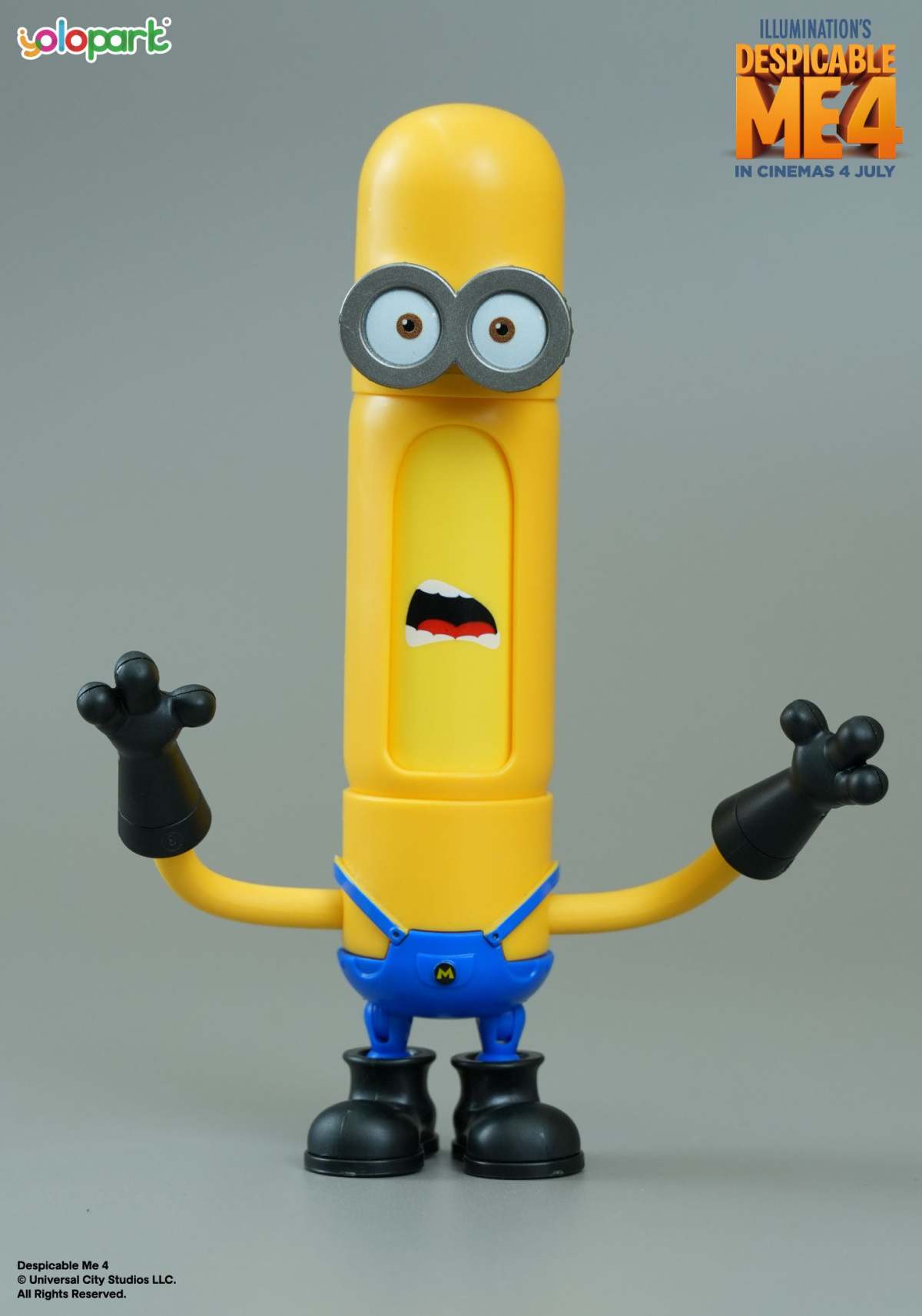在官方發佈的第二支正式預告中可以看到五位小小兵被選中作為超級藥水的實驗體,被改造成為擁有超能力的頂尖特務,而本次的《神偷奶爸 4》小小兵組裝模型便是將五位小小兵:傑瑞(Jerry)、戴夫(Dave)、提姆(Tim)、葛斯(Gus)以及梅爾(Mel)(名字皆為暫譯,實際翻譯以電影為主)製作為高度約 12 公分的組裝模型,還原他們獲得超能力後的造型。每款作有與他們的能力有關的有趣玩法,例如梅爾像獨眼龍一般可以伸縮及發光的眼罩、提姆可以彎曲伸長的手部替換件等,搭配多款預上色的替換零件,再現他們在劇中使用超能力的模樣!