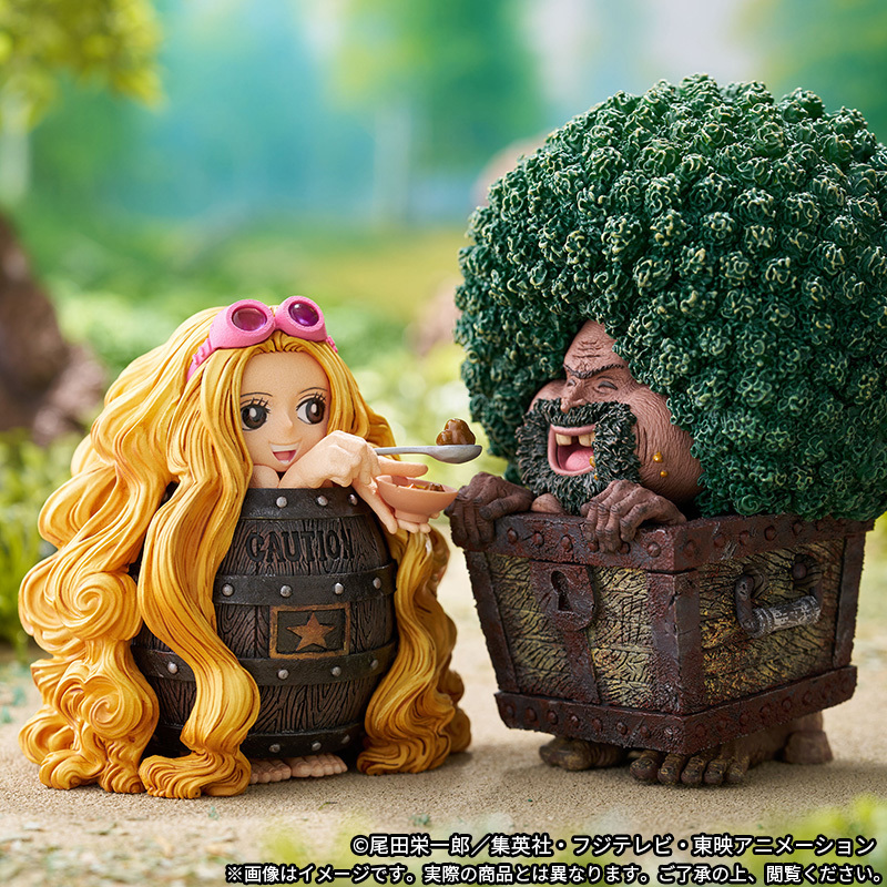 「航海王DXF~THE GRANDLINE SERIES~卡蒙&薩芬庫魯」,由原型師 福家 悠太擔任原型製作,將珍獸島兩人的幸福時刻立體化!尺寸分別高約 10 公分、7 公分,逼真地刻劃出非常細緻且擬真的細節,蓬鬆的頭髮、臉上的大鬍子和細紋、手指紋路都充滿細節!塗裝出鏽蝕的寶箱、腳趾的髒污等都十分豐富。薩芬庫魯可愛的神態也很迷人~這款作品參戰 2024「ONE PIECE造形王頂上決戰」的 Real Figure 類別,在特設網站中還有更多參賽作品,已於 6 月 3 日開始投票!