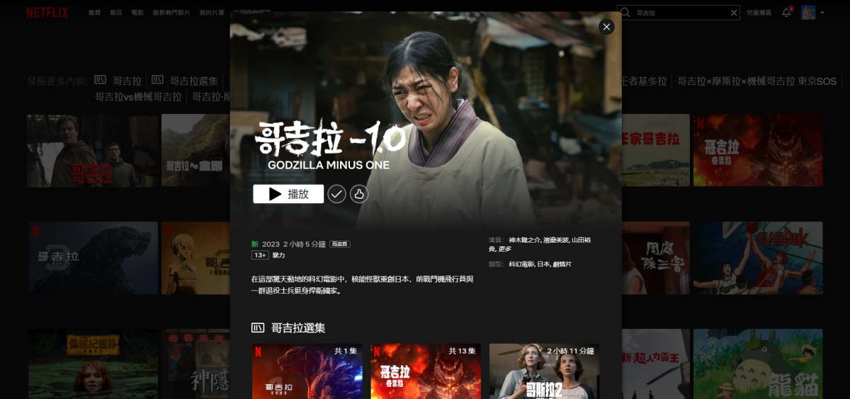 而就在多數海外戲迷網友可能已經抱持「應該是沒機會」的想法時,這部熱潮不斷的《哥吉拉-1.0》,就在今日無預警地上架於串流平台Netflix中,並且不需使用VPN跨區,也能夠看得到含有中文字幕的電影內容。