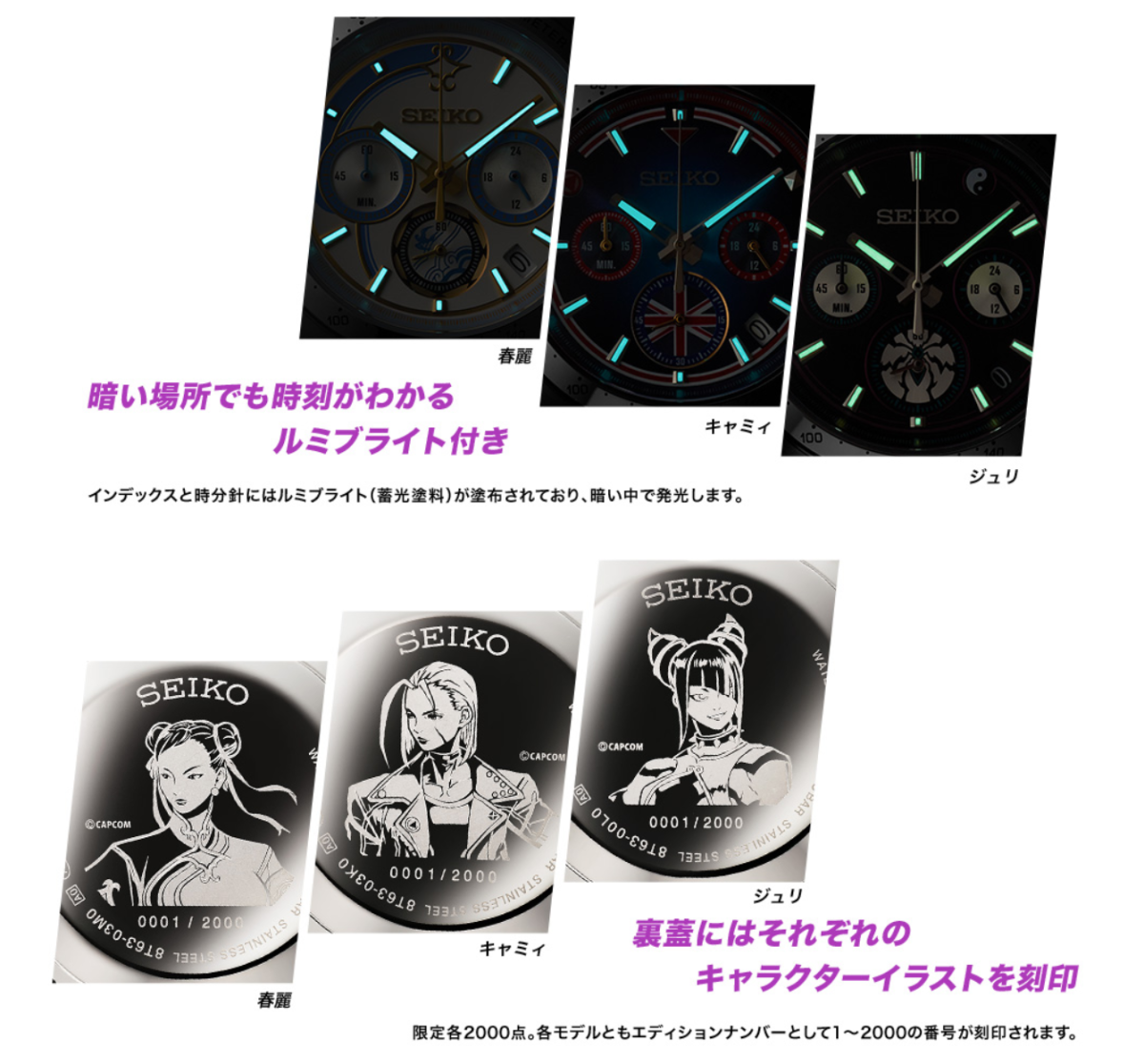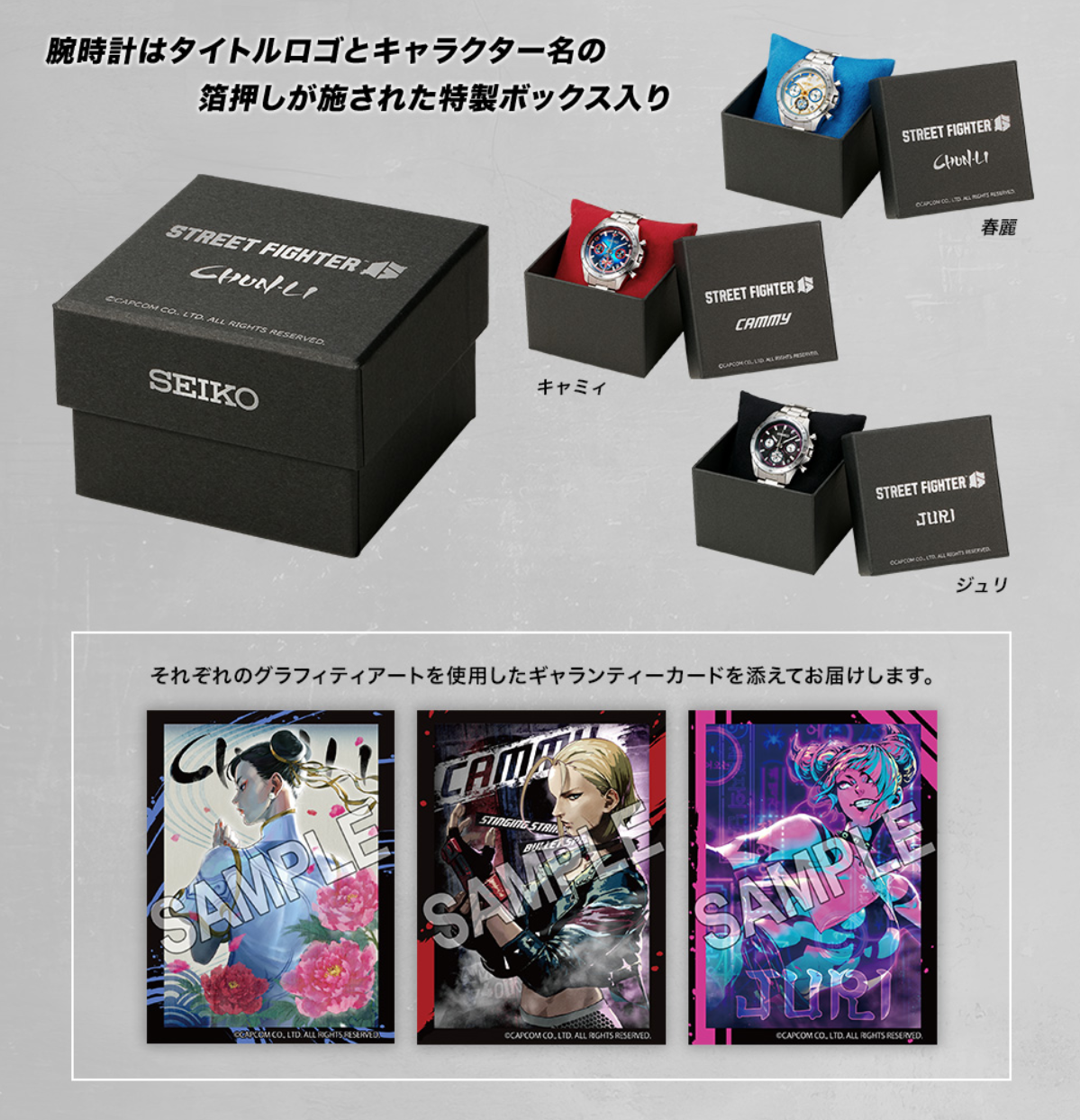 近日宣布與 CAPCOM 格鬥遊戲《快打旋風6》合作,推出三款以角色為主題的聯名限量手錶,打造專屬特色的手錶款式。售價為 65,780 日圓,目前已開放預購,預計 2024 年 12 月下旬正式發售。