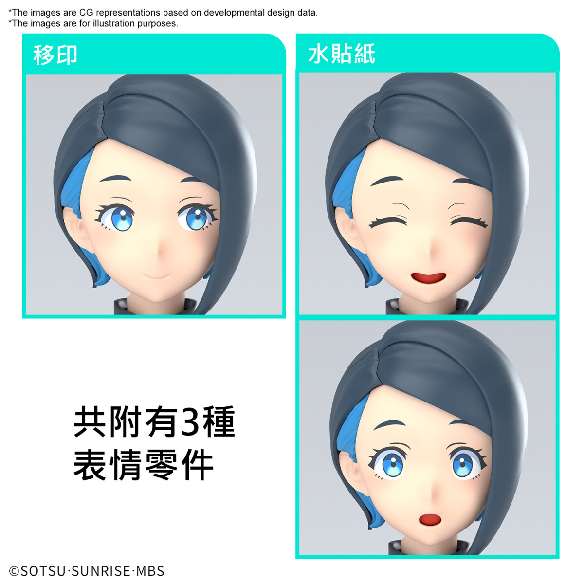 配件附有一種印刷完成、兩種搭配水貼製作的表情零件可替換,並且開嘴表情能選擇有無露出牙齒的造型。此外還有 10 種不同造型的左右手掌替換零件、平板電腦等,能夠自由替換把玩出劇中場景。