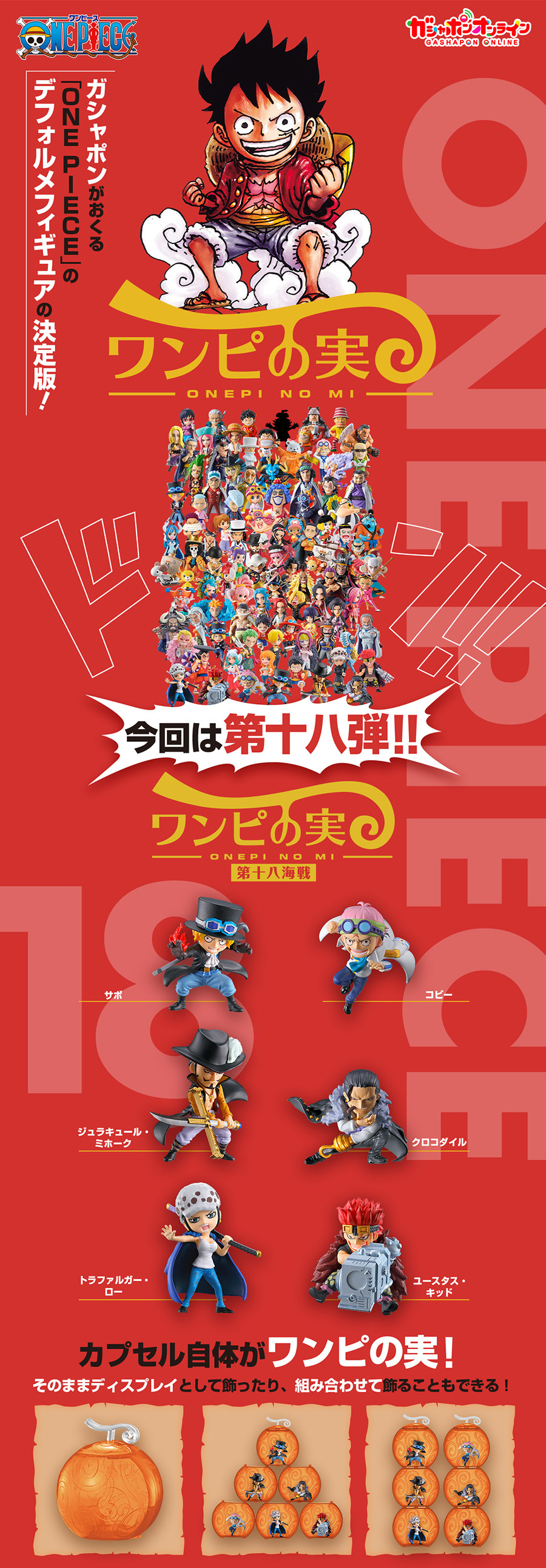 由日本萬代轉蛋事業部 GASHAPON 發行、讓尾田榮一郎老師都激推的《航海王》主題轉蛋「ワンピの実 (航海王的果實) 」將在本(6)月推出最新的「第十八彈」啦!建議售價為每轉 500 日幣。