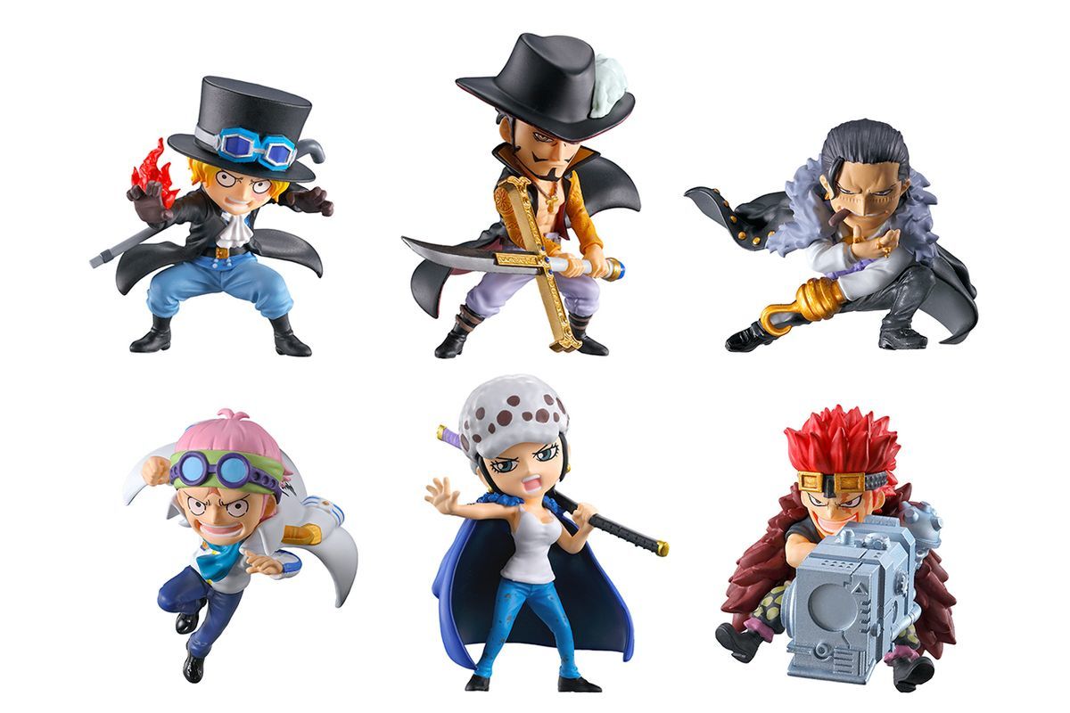 本次的第十八海戰收錄有海軍少年英雄「克比」、擁有炎帝稱號的革命軍戰士「薩波」、目前掌握了十字公會實權的「克洛克達爾」與世界最強劍士「喬拉可爾·密佛格」、遭到性轉收攏大量人氣的「羅」,以及「尤斯塔斯·基德」;雖說經過 2.5 頭身的比例重新詮釋變得有夠可愛、薩波的臉還超級肉,但每一款角色都呈現出很不錯的躍動感,相互搭配就能把玩出迷你的激鬥場面,而在基德機械手臂、薩波的帽子、克比的護目鏡......等角色特色也有不錯的細節刻畫。