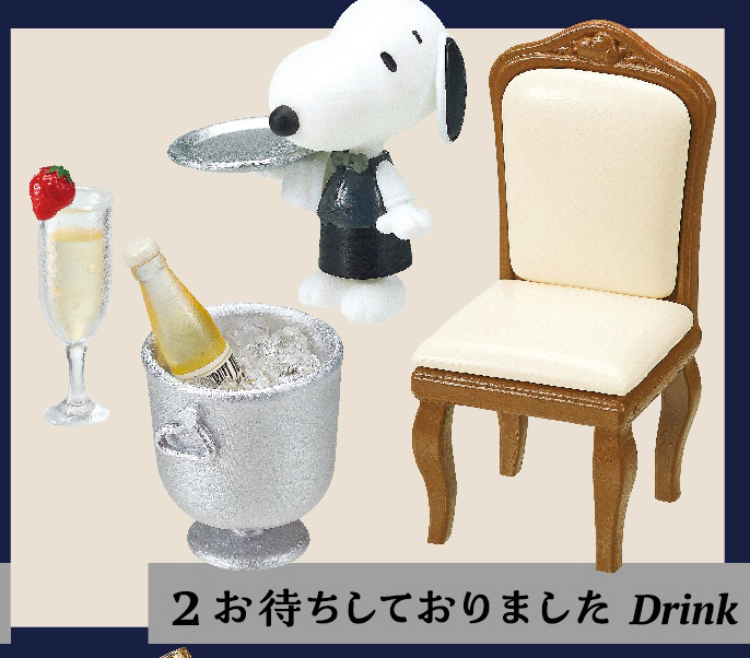 本日的晚餐時光,就待在這間擁有豐富史努比主題料理的餐廳裡度過吧!如果把這次盒玩的全 8 款收集,就能在整套的用餐過程中享受到滿滿的史努比,包含開胃小點、湯品、主餐、餐酒、飯後甜點,就連這間餐廳內的餐具、菜單都設計得非常可愛!施以優雅金色裝飾的木質調餐點推車還印製了史努比的圖案,如果是喜歡到主題餐廳用餐的玩具人,對這套肯定是毫無抵抗力!而且本作只要收藏一中盒就可以獲得一張印製了精美夜景的背景片。