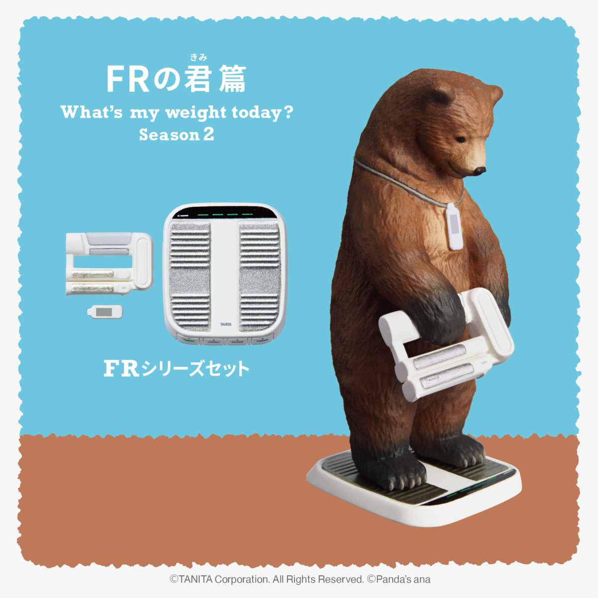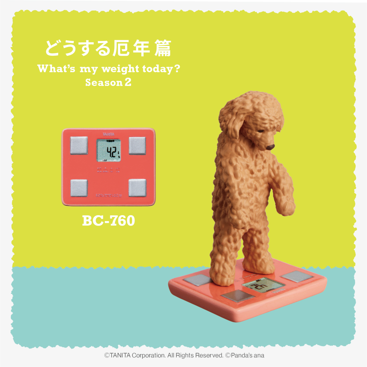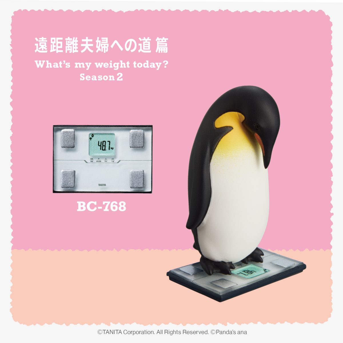 除了將各種動物擬人化、展現出在乎自身體態的有趣造型,同時也讓人可以收集到各式各樣 TANITA 出品之體重計的「今天幾公斤?」轉蛋在本次 Season2中找來了熊、鱷魚、豬、企鵝、狗、兔子這六種動物,看著大家低頭看向數字的站姿實在太可愛!體重計部分更包含了 TANITA 的豐富產品,像是一次囊括筋力計&體組成計&步數計的 FR 系列套裝、能夠測量體脂肪與肌肉量各項數據的 RD-930L,以及七合一體組成計 BC-760 的橘色版本......等。
