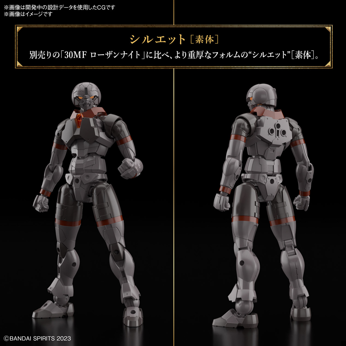 「30MF 洛桑鬥士」採用與前作「騎士」不同的新型人形素體,擁有更加粗壯的厚重體格。可動部分同樣擁有真實人類般的柔軟度,能藉由四肢與胸、腰、頸等各處的多軸可動機構設計,把玩出奔跑、英雄落地、高跪姿、盤腿坐等自然而帥氣的姿勢。