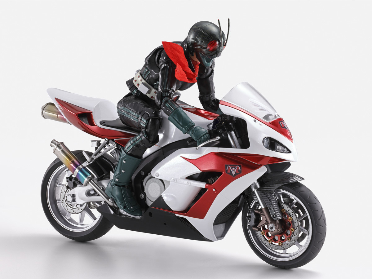 「S.H.Figuarts 旋風 1 號(假面騎士 THE NEXT)」運用完全新規零件再現立花藤兵衛為本郷猛製作的高性能機車,精密製作出寫實的輪框、懸吊、車練、排氣管...等機械結構,並施以多種金屬色塗裝表現厚重質感,其中排氣管部分更施以鮮豔的金屬漸層塗裝,仿製出鈦金屬表面的燒色,擋風玻璃和大燈則使用透明零件製作。