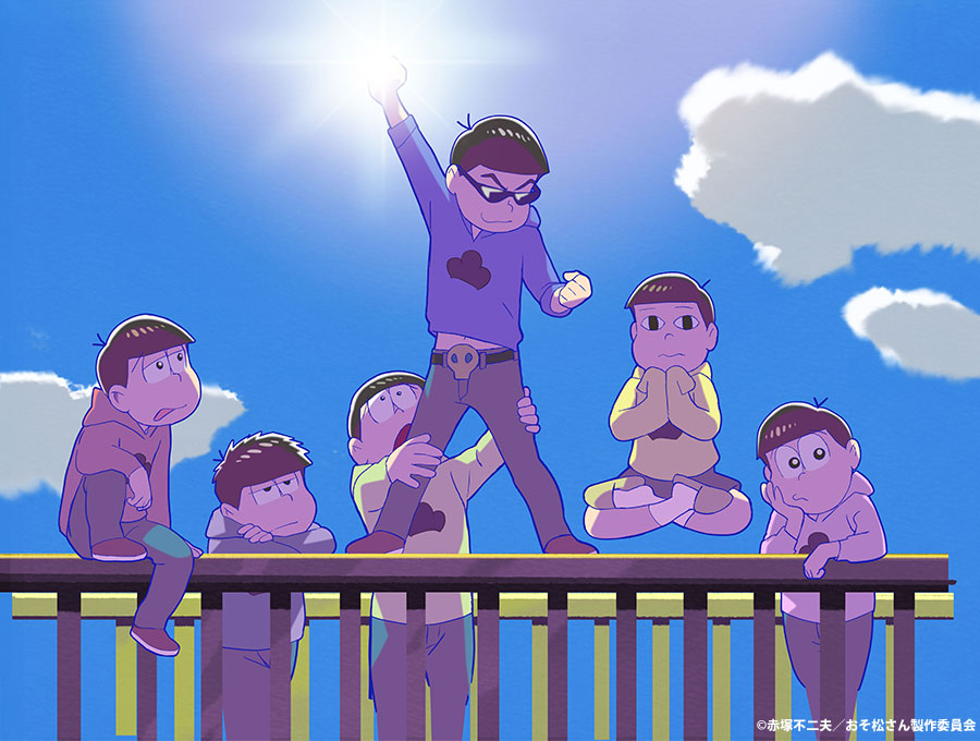 由赤塚不二夫所創作的搞笑漫畫作品《小松君》,其經過三度改編成電視動畫《阿松》( おそ松さん ) 畫,可說是日本家喻戶曉的漫畫人作品,六胞胎的設定更是讓人玩味。
