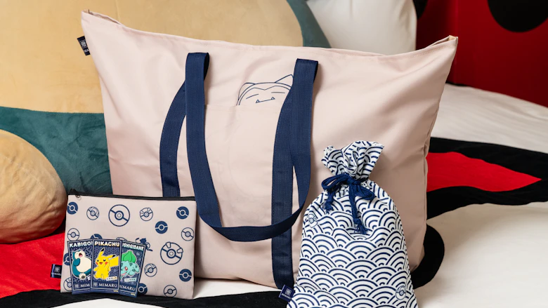 2024 年 6 月以後,訂房住宿者都可獲贈原創小禮品,如圖所示有著寶可夢的托特提包、收納袋以及拉鍊袋,都是原創合作的設計。