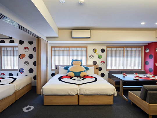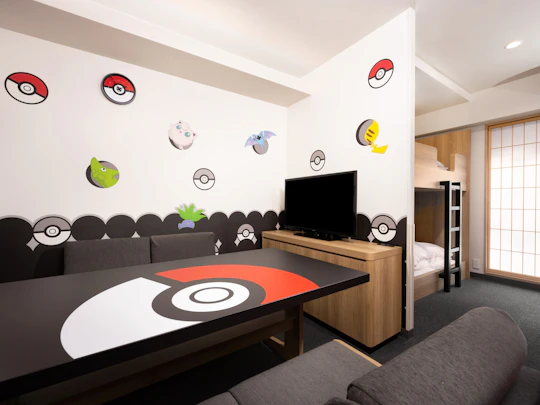 從 4 人房到 6 人房多種房型,「Pokemon Room」最大的特色就是映入眼簾的便是巨大的卡比獸玩偶,貌似在房間裡恭候旅客入住。其次房間的擺設空間都是根據寶可夢而作的原創設計,讓你彷彿來到了寶可夢世界般的體驗。