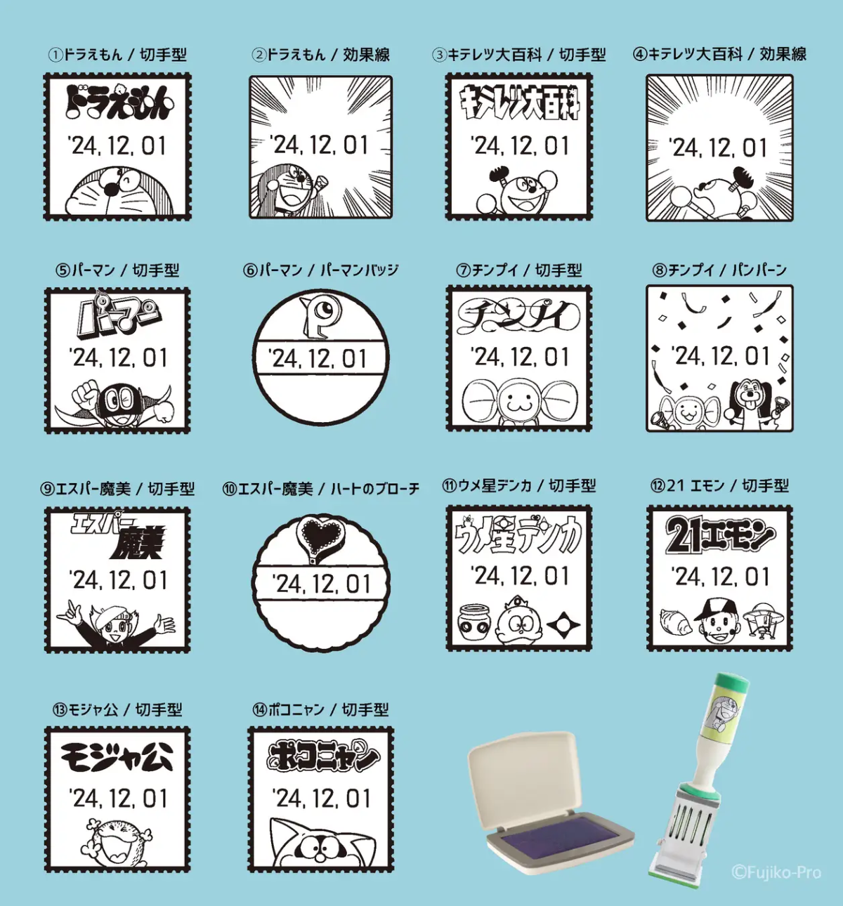 另有橢圓形的大型日期印章,蓋印大小為 48×32mm ,集結許多藤子·F·不二雄中經典的角色製成。售價為 5,940 日圓。