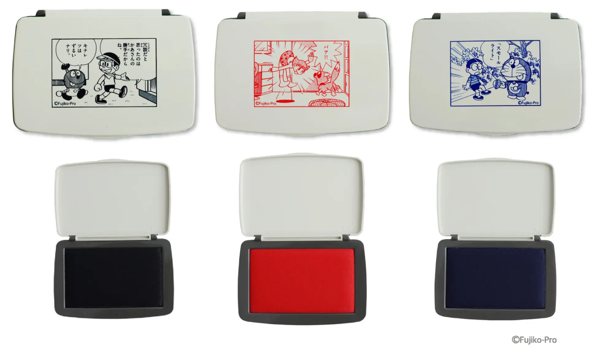 有印章當然就要有印泥 ! 同樣由 Sanby 株式會社製作的專屬印泥,共計三款不同顏色外,蓋子上都有著作品的漫畫插圖。售價為 1,430 日圓,大小約為 W111×D78×H16mm,是個方便攜帶的尺寸。