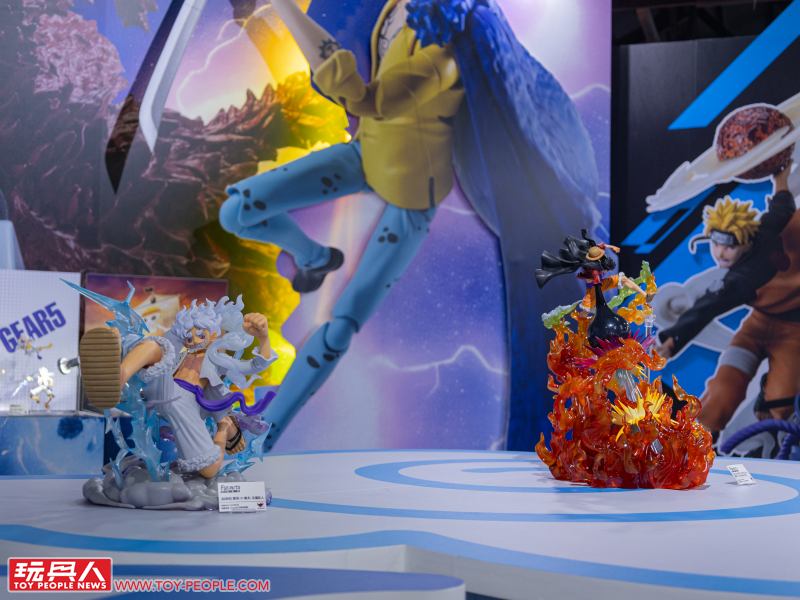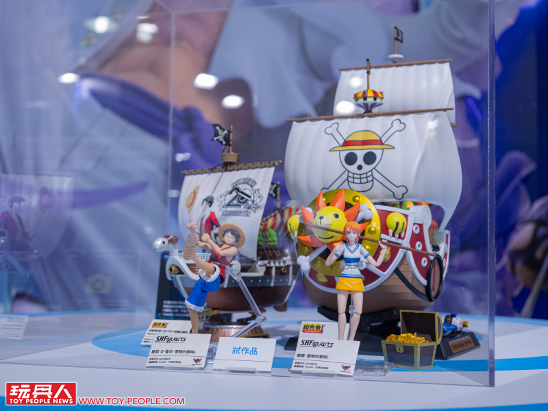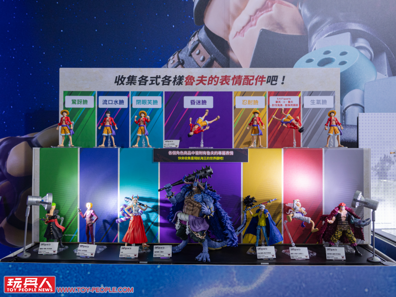 小編仔細看一圈之後也發現部分的可動人偶皆以不同的動作、或是搭配特效件進行展示!接著,我們就一區一區的來逛吧!如同 TAMASHII NATIONS 一貫的展場佈置,我們能依照動、漫畫作品來慢慢逛,首先就是航海王的主題專區啦~!