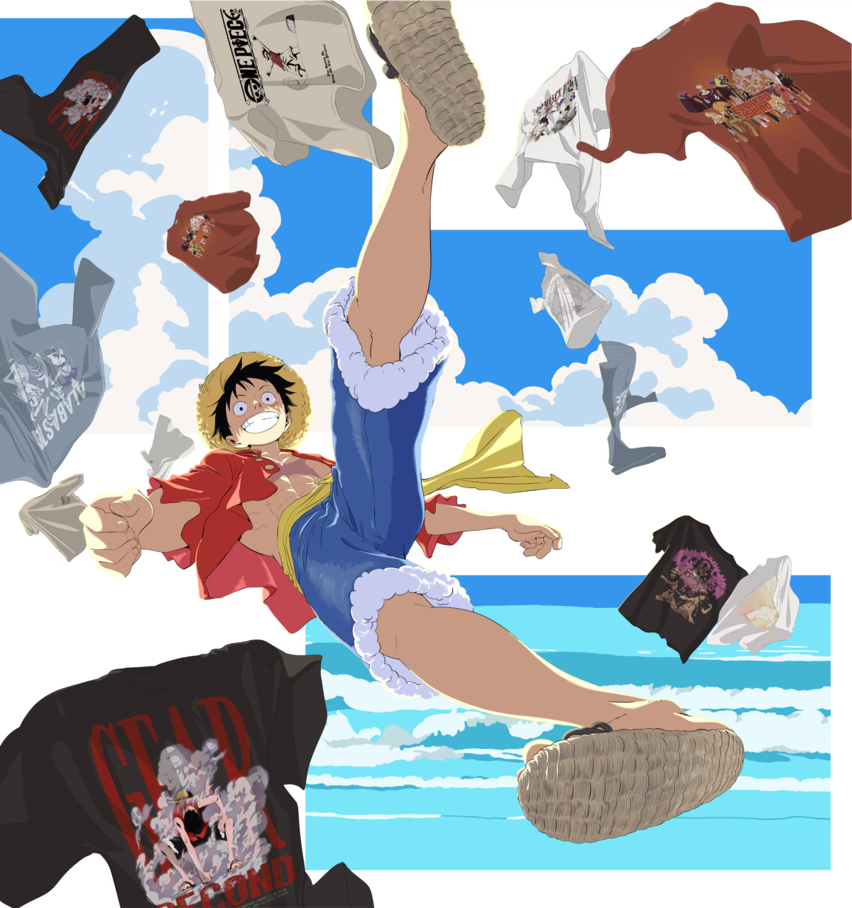 這次的推出的款式,以「魯夫冒險的軌跡」為主題,以動畫 25 年來歷經的冒險故事來設計,讓喜歡本作的粉絲可以藉此作為回味。本次 UT 商品分成成人男性與童裝款,各有不同的樣式給消費者選擇,不只大人能穿,小孩也可以擁有。