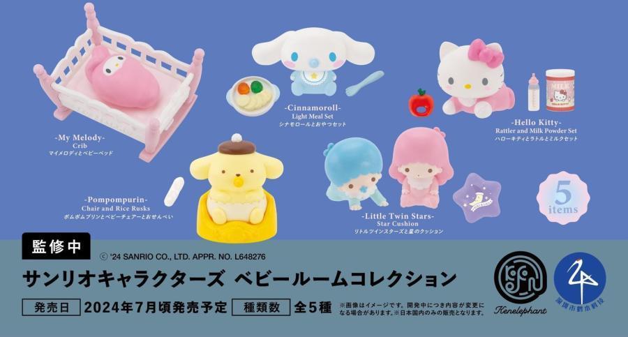 日本玩具公司 Kenelephant(ケンエレファント)將推出以多款三麗鷗經典角色為主題的新商品——「三麗鷗明星 嬰兒房收藏」轉蛋,參考售價為每轉 500 日圓,預計於 2024 年 07 月發售!