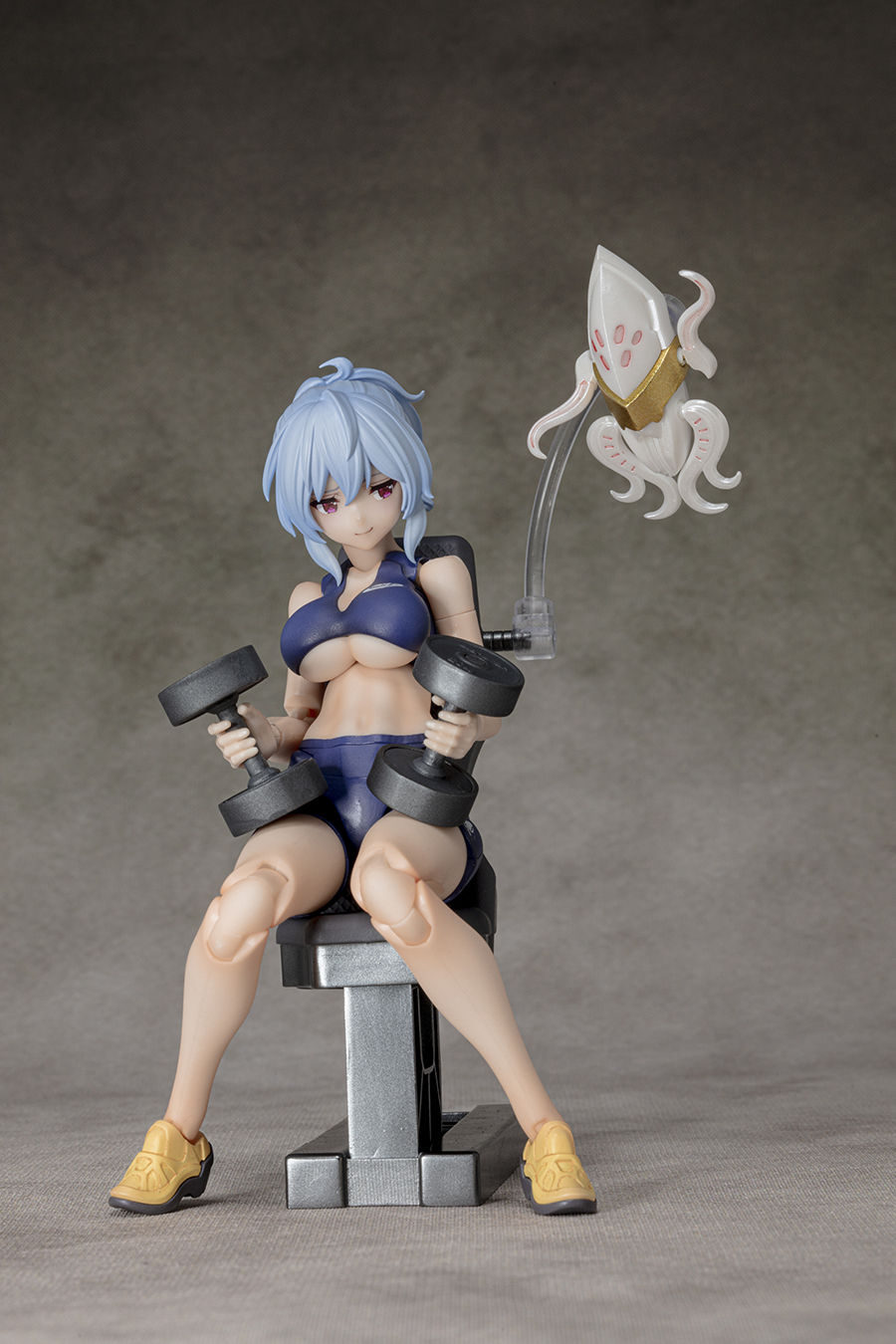 「Dark Advent」系列以原型師浅井真紀設計的「Machineca(マシニーカ)」素體為基礎,並結合插畫家 saitom 繪製的美少女角色,打造性感魅力的組裝機娘模型。第五彈再登場的人氣角色-拉妮亞,這次以到健身房鍛鍊身體的健身造型呈現~推出「Dark Advent 拉妮亞 放鬆ver.」組裝模型,組裝後全高約 16 公分,穿著貼身健身服讓好身材展露無遺,透過健美表現性感魅力。從帽子、連帽衫、運動鞋到緊身褲,可以自由選擇出豐富的穿搭造型,另外還附有啞鈴、健身凳、飲料瓶等小物品,重現訓練場景!還有可愛的小海妖陪伴~