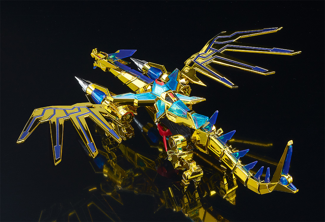 「MODEROID GOLDBURN 兩體套組 Extra Gold Ver.」將過去推出的「GOLDBURN」、「BIG GOLDBURN」組裝模型套件獨立出來同梱販售,並將原本的金色成形零件重新施以電鍍加工,讓裝甲呈現閃耀的豪華金色。