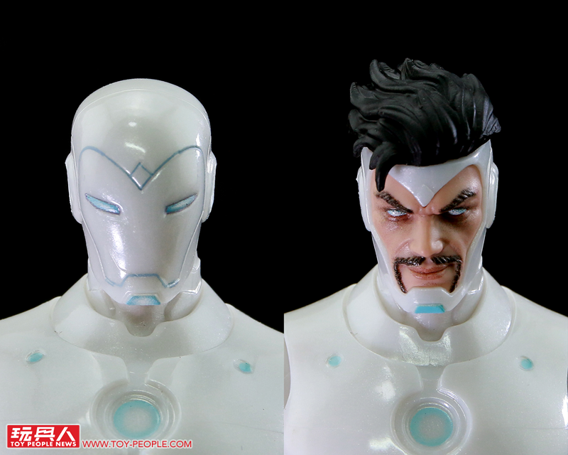 ▼本次的人偶重現了優越鋼鐵人獨特的白色「內共生體裝甲」(Endo-Sym suit),附有替換裸顏頭雕/著盔頭雕,以及大家都很熟悉的特效零件。