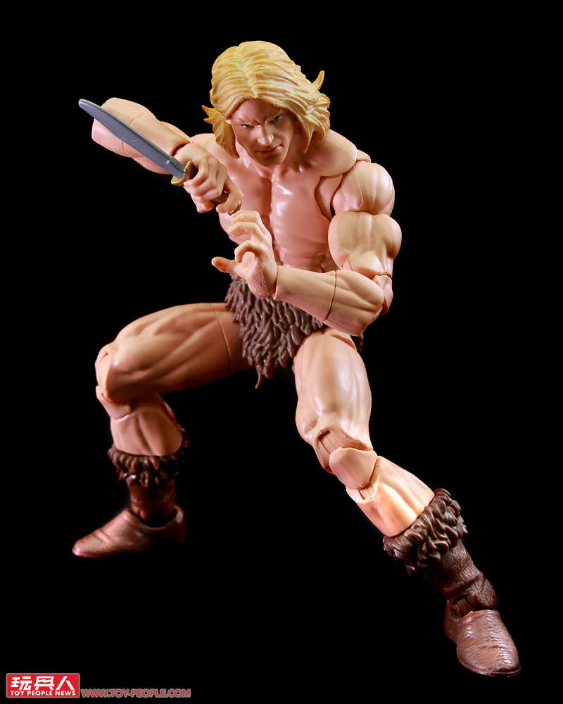 ▼幾乎就是裸色素體的極致呈現,這位宛若漫威版泰山的卡-札爾同樣採用了無軸素體,並附屬了一柄藍波刀及土製的石矛長槍。
