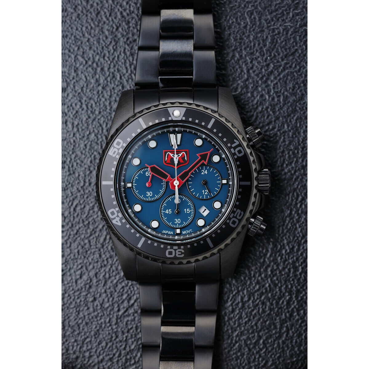 這次萬代推出的假面騎士經典 1 號太陽能計時手錶,設計上採用「Tachibana Racing Club」的標誌作為主軸,以藍色背景搭配紅黑色的指針讓整體視覺效果十分強烈,搭配黑色不鏽鋼本體,整體氣勢強烈無比,配上三眼識別與計時機能,非常適合日常配戴。
