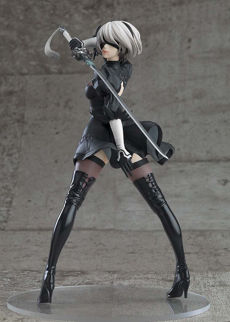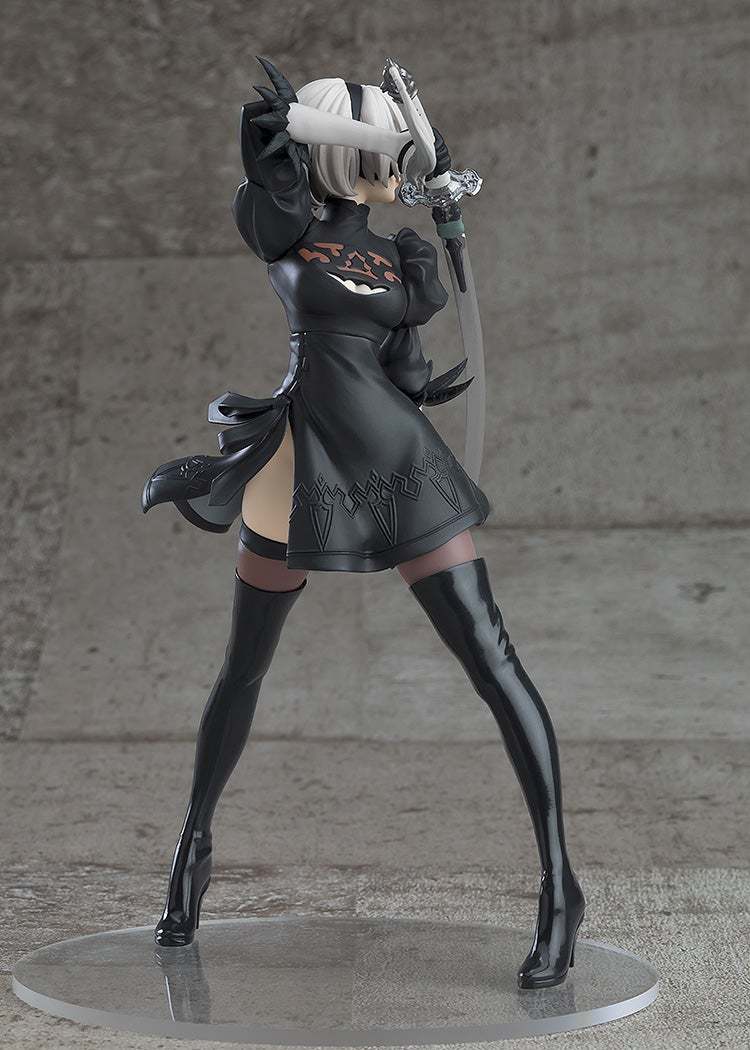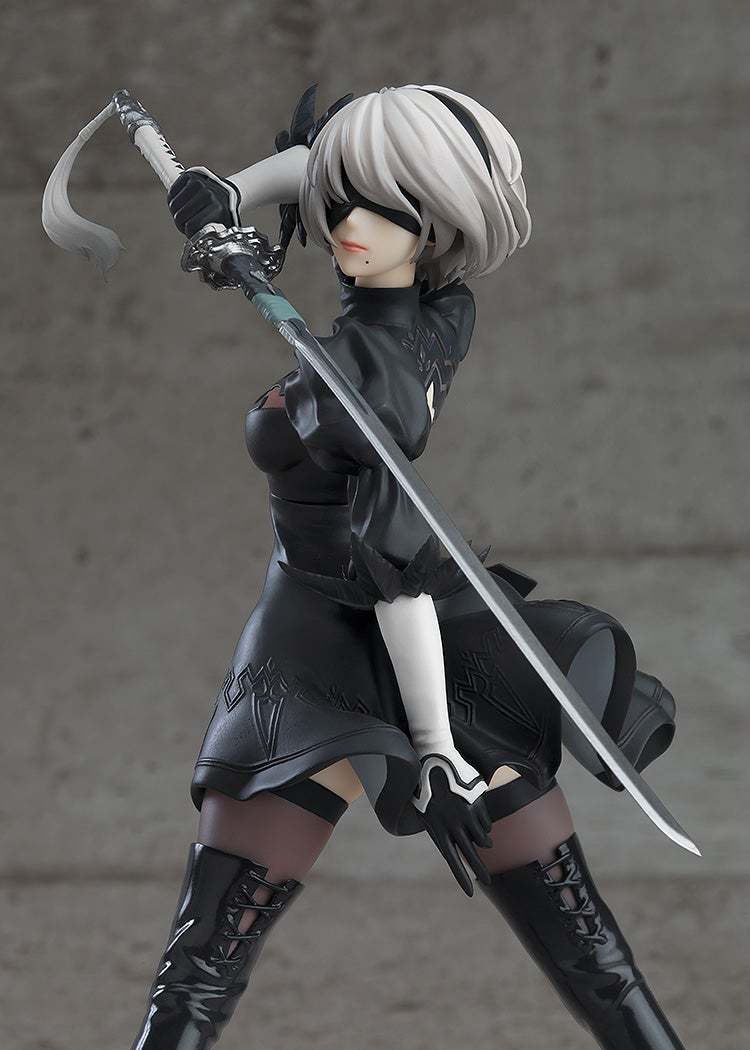 本次的 POP UP PARADE 2B 無比例塗裝完成品全高約 17 公分,展現出回眸的戒備姿態,雕刻呈現出哥德式服裝上的細節與皺褶,飄逸的動態大幅加強了整體的視覺張力,在裙擺開衩處隱約露出的白皙大腿與黑色絲襪的呈現更展現出了她結合力與美的迷人魅力!