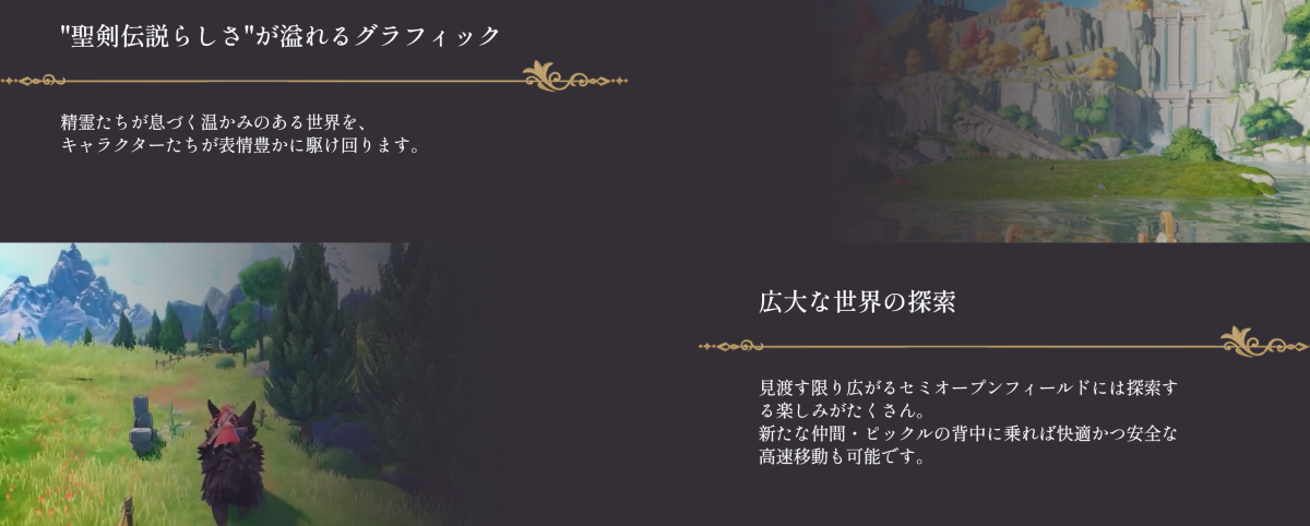 這款官方設定上是自 2006 年《聖劍傳說4》後睽違近 16 年回歸原點的新作,延續過往獨特的自然和精靈緊緊相連的世界觀。加上豐富且溫暖的色彩帶給玩家體驗。也希望相繼多年來的原點新作,可以讓玩家體驗系列進化的遊戲風韻。