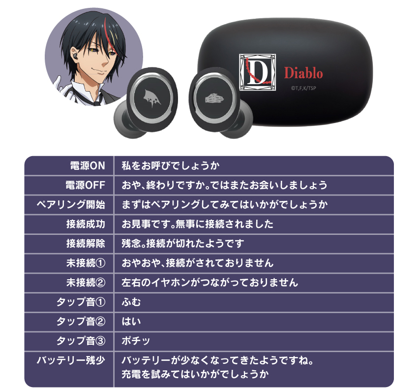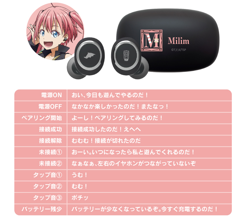 當然這次最吸引人,就是莫過於三位角色聲優錄製的提示語音。包含 : 利姆路 ( CV : 岡咲美保 ) 、蜜莉姆 ( CV : 日高里菜 )、迪亞布羅 ( CV : 櫻井孝宏 ),使用者可以在耳機聽到角色跟你問好,陪伴你聽音樂的時光。