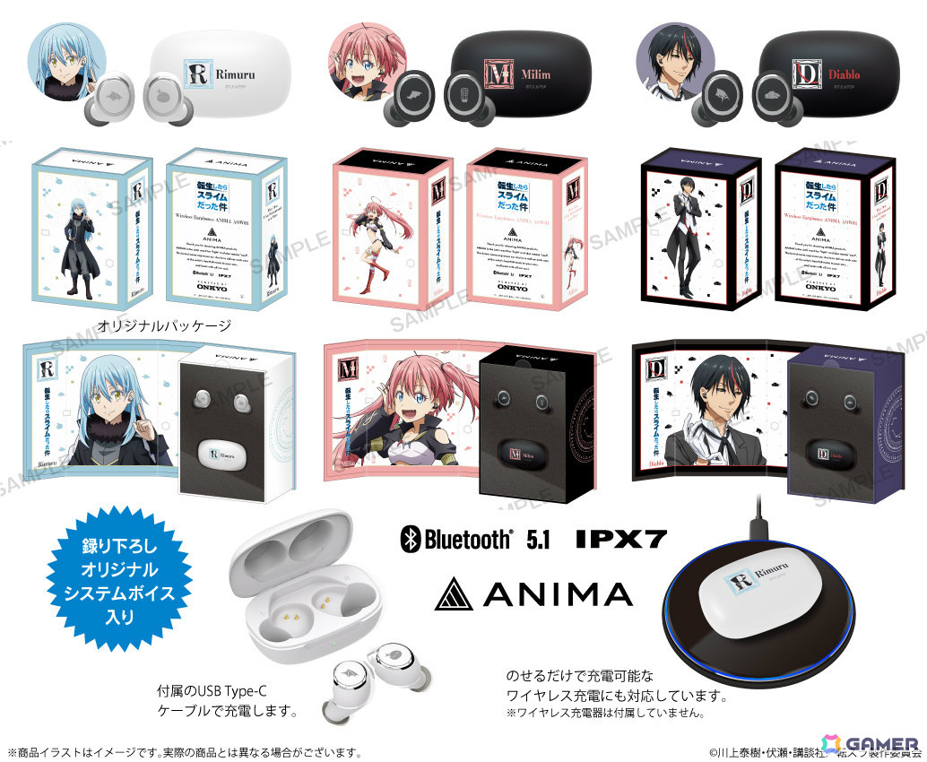 這次宣布與本季播出第 3 季動畫的《關於我轉生變成史萊姆這檔事》合作,推出聯名款樣式的真無線藍牙耳機,更有三種人物樣式可供選擇。售價為 20,000 日圓,目前已可於 ONKYO 官網訂購。