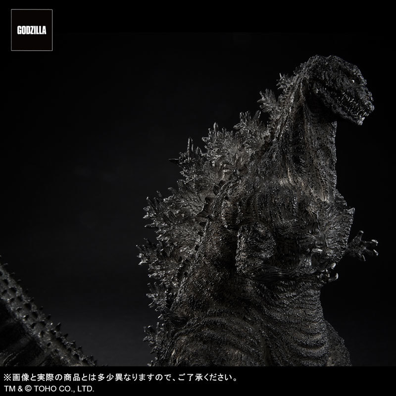 此商品藉由精密製程在軟膠模型上大幅再現原型細節,再現此版哥吉拉令人恐懼的頭部造型、全身苦瓜般的皮膚紋路、從後頸一路延伸至巨大尾巴的密集背鰭。原本發出紅光的部位則改為透明零件加上內部銀色塗裝,呈現黑白版電影中發光的質感。