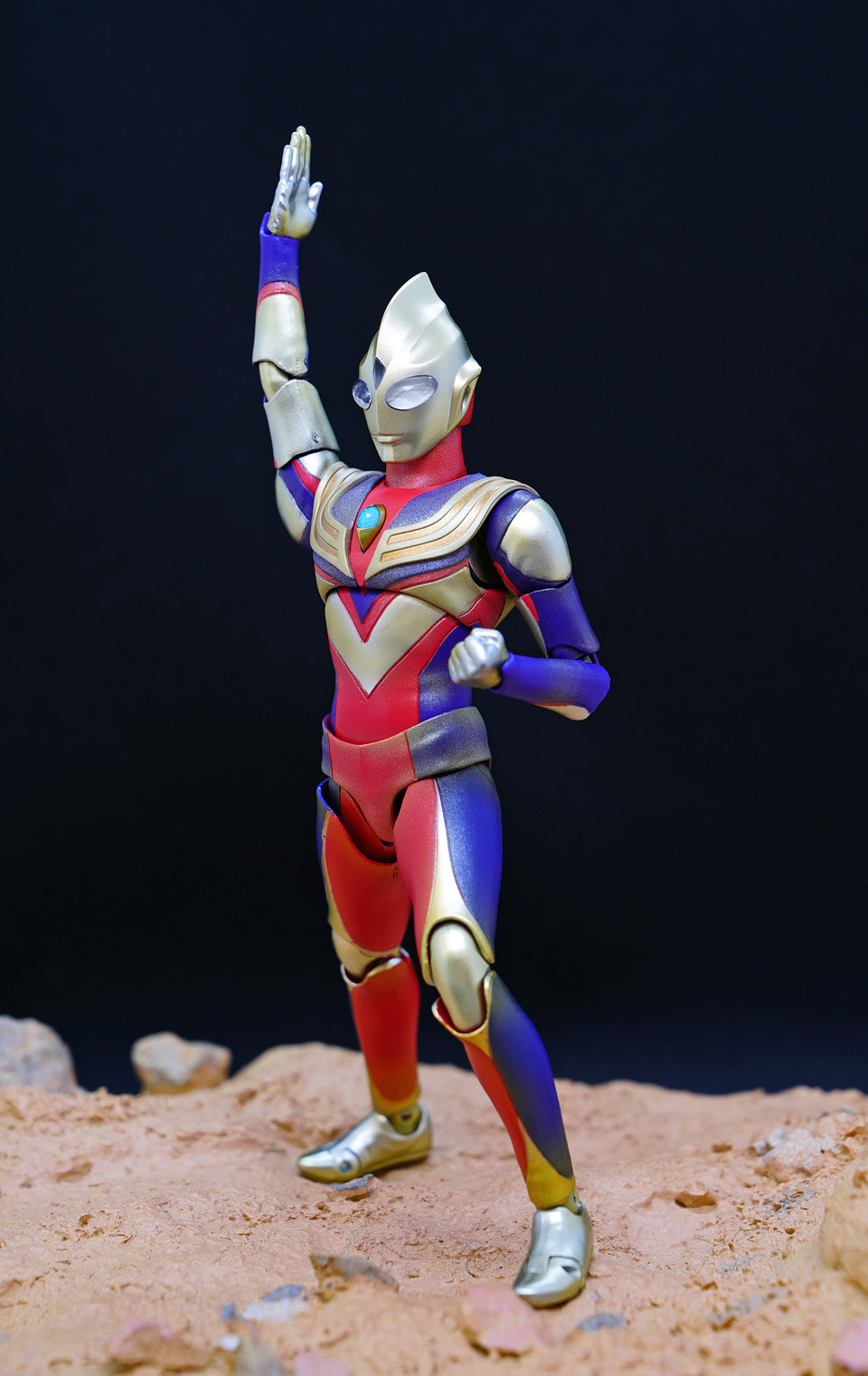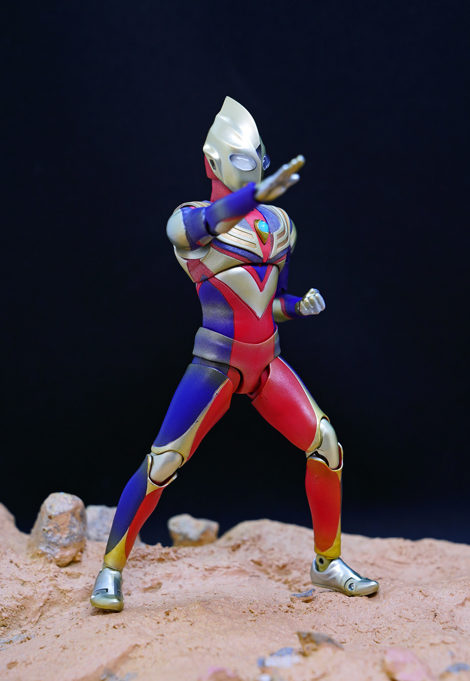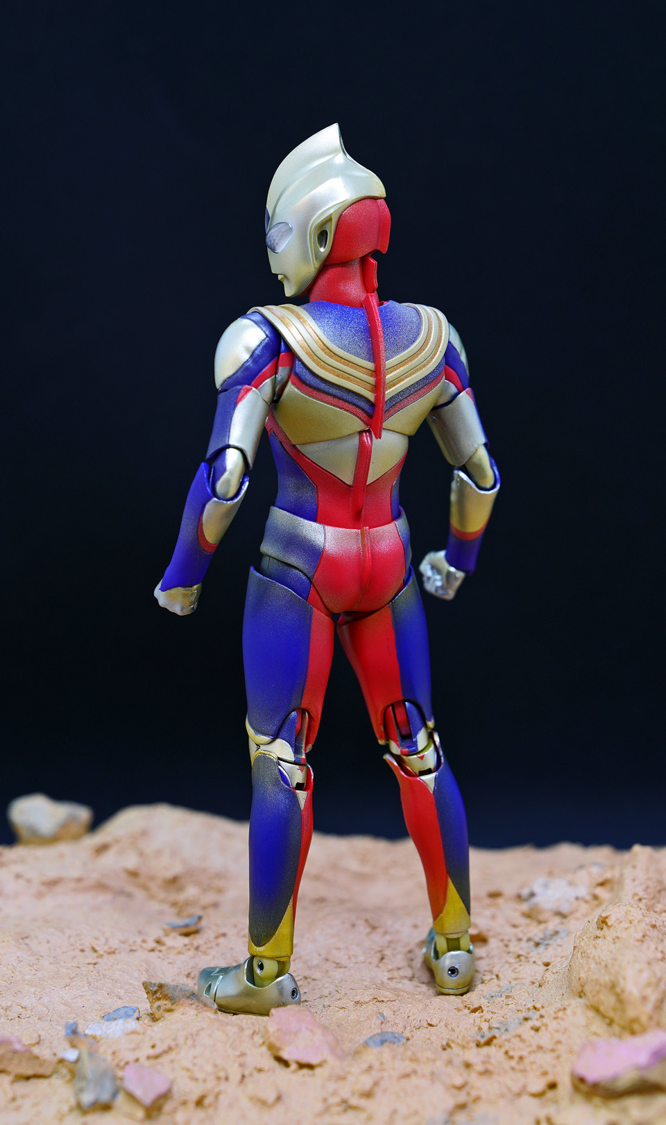 早前 Bandai 想以軟膠素體作嘗試…… 方向是好,但明顯是眼高手低了。本素體因為是 PVC 製,缺點一來是表面的塗裝極易脫色、第二是和包膠的十二寸 figure 一樣關節不能長期保持屈曲狀態,令這只我極度喜歡的廸加白白的浪費了…… 然而 Bandai 留意到上次的失敗及從中汲取教訓,今次超人系列的真骨雕 的確沒有上次迪加的 ‘’即時危險‘’!