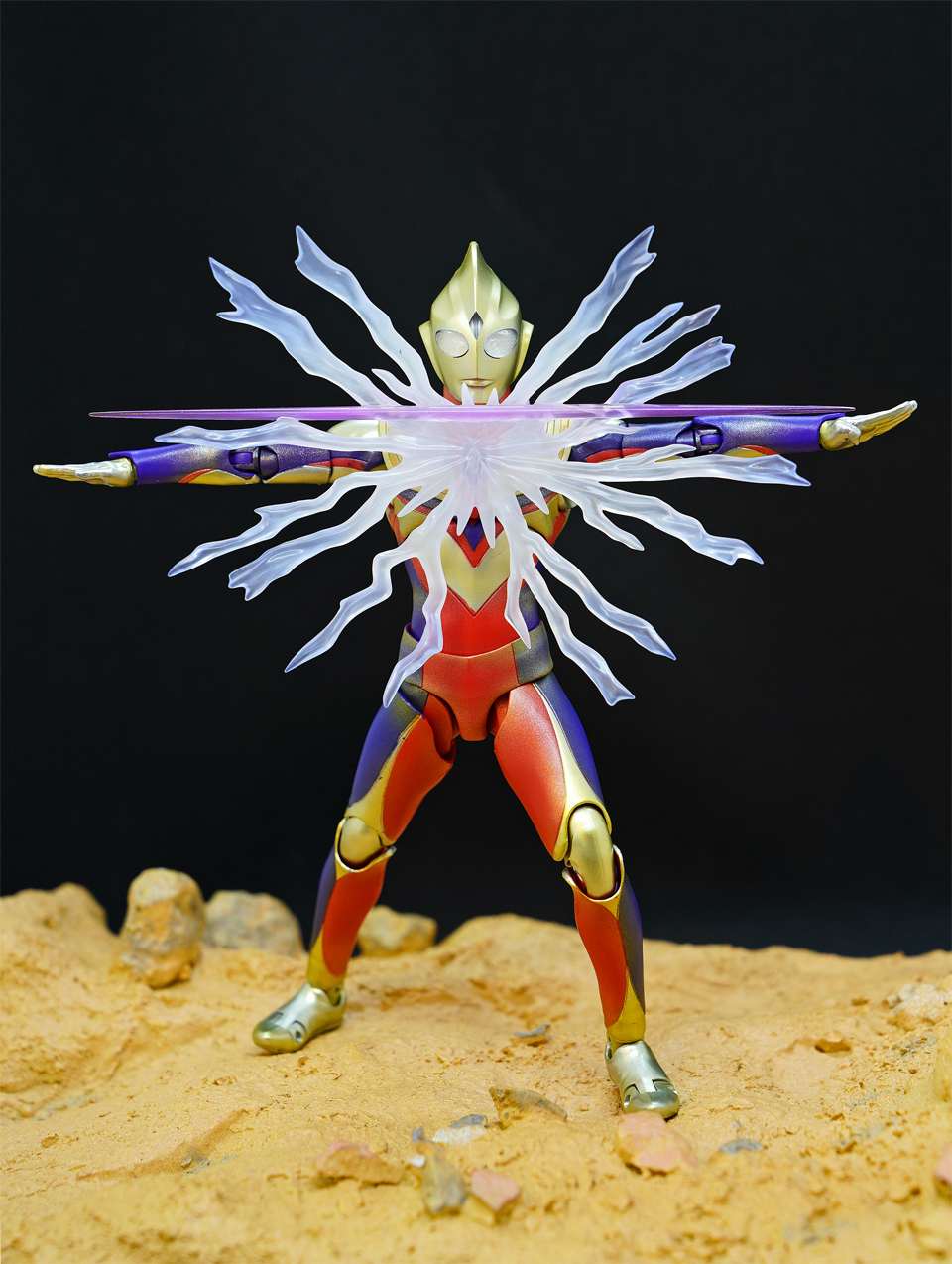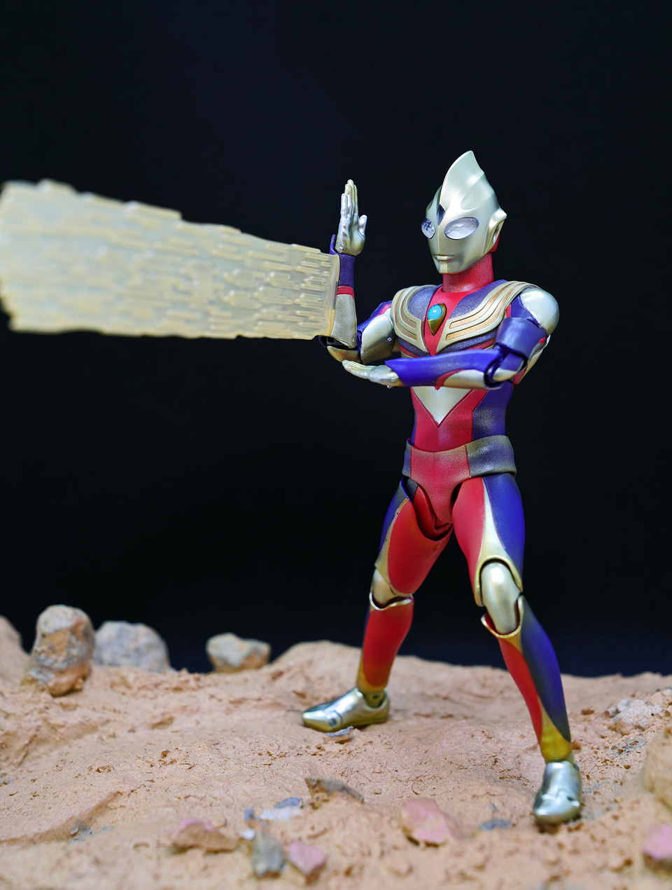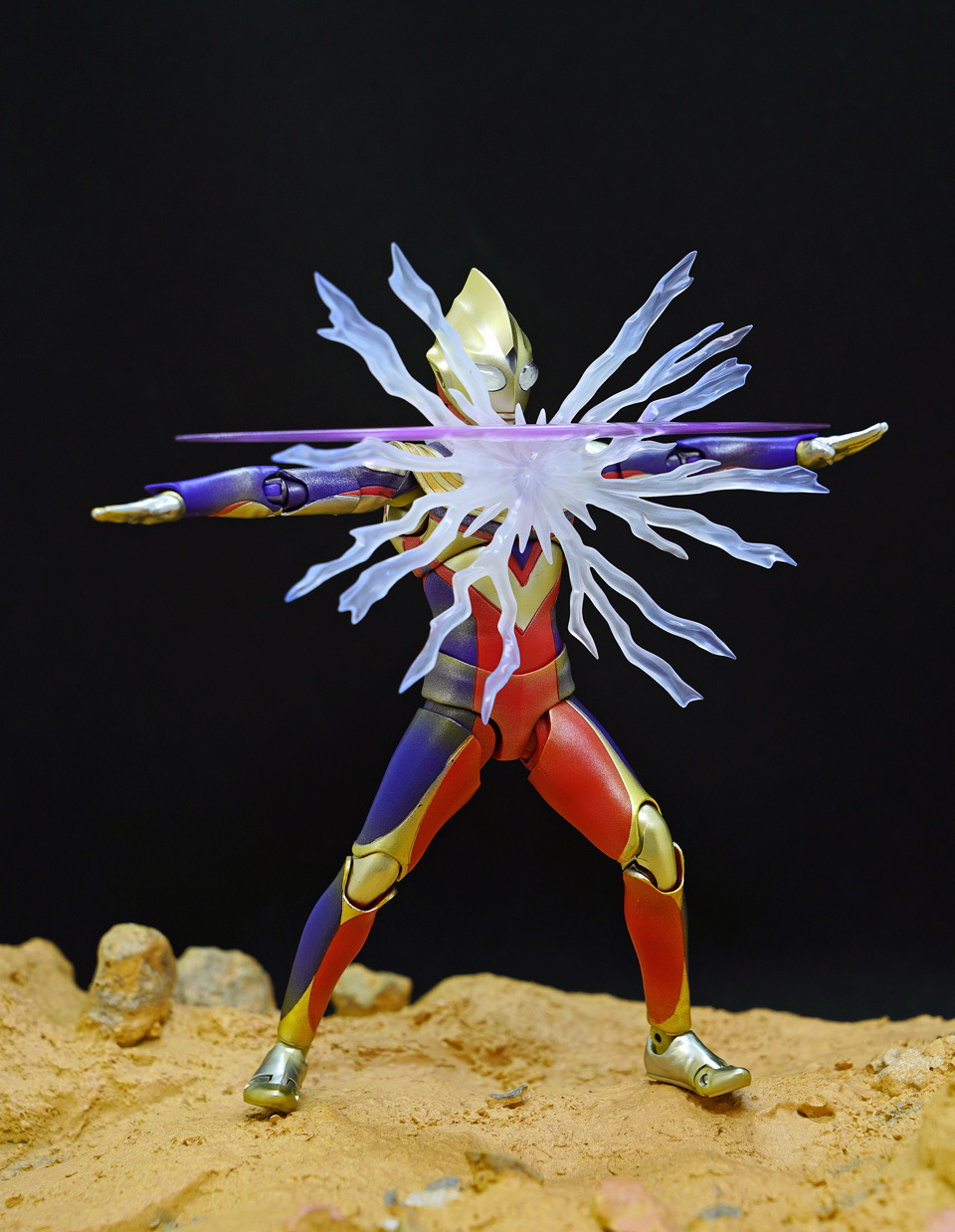 本體全高約 150 mm,依據當年穿著迪加戲服的動作演員權藤俊輔的體型製作,並由圓谷製作造型部門 LSS 徹底監修,再現劇中體態以及細節。肩部、腹部、髖部皆採用軟材質製作,配件包括交換用手部配件左6種、右5種,閃耀哉佩利敖光線特,交換用彩色計時器(紅),哉佩利敖光線動作特效等。可玩性不俗。