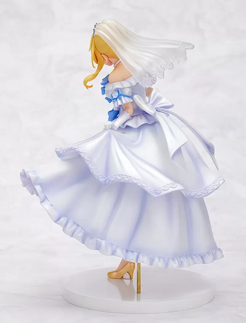 「KDcolle 達克妮絲 原作版 10週年紀念ver.」1/7比例模型,尺寸約高 17 公分,將繪師三嶋黑音所繪製的插畫立體化!還原達克妮絲穿著婚紗的造型,刻畫出由緞帶和玫瑰胸花點綴的結婚禮服,裙擺隨著達克妮絲可愛的動作而飄逸,整體師以珍珠光澤感的塗裝,營造更加華麗的質感;精美的蕾絲圖案與金屬頭飾和透明頭紗,讓整體更具層次!用拉拉蒂娜害羞的笑容慶祝10週年吧~